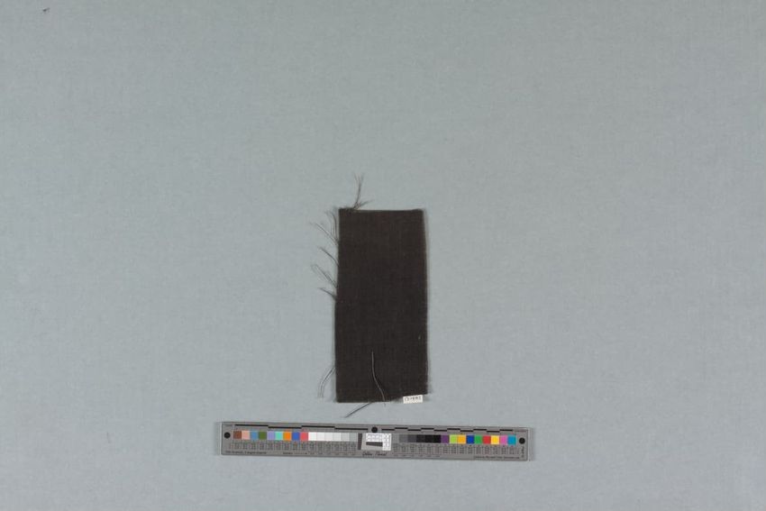 Flat strap, tapered towards end, broken at midpoint. Attached to pin/plate - rectangle with slightly tapered and rounded ends. Strap hinge with connected brace. Heaviness suggests a later date (1750-1775?)