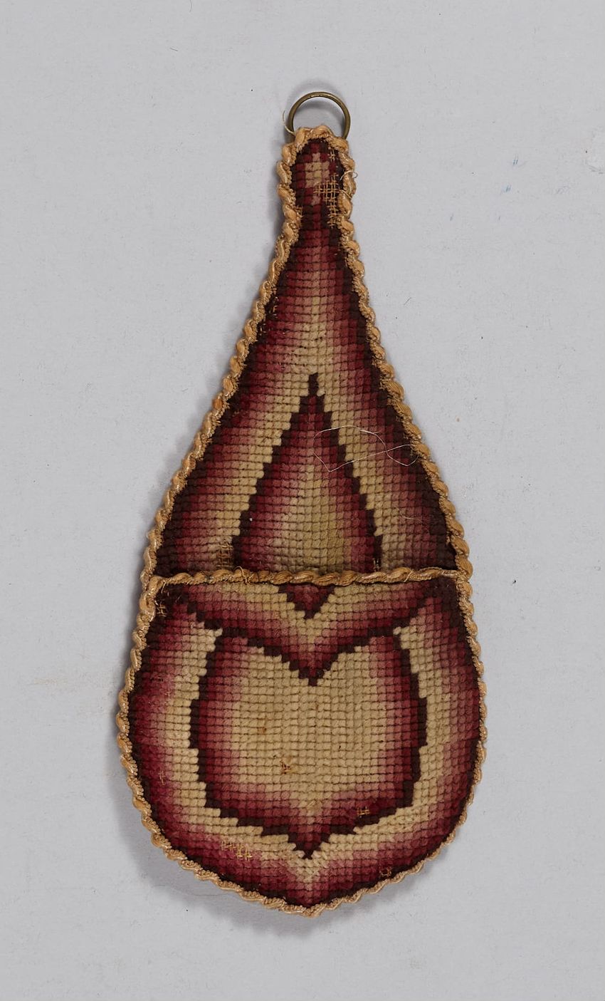 Brown, tan and cream silk plaid, with black chine stripe; quilted with six casings, with piping at back, forming six puffed bands, lined with batting; narrow self-ruffle around brim; wide neck ruffle lined with thin layer of batting; center back horseshoe shaped panel trimmed with bow of same silk; ...