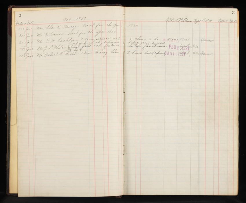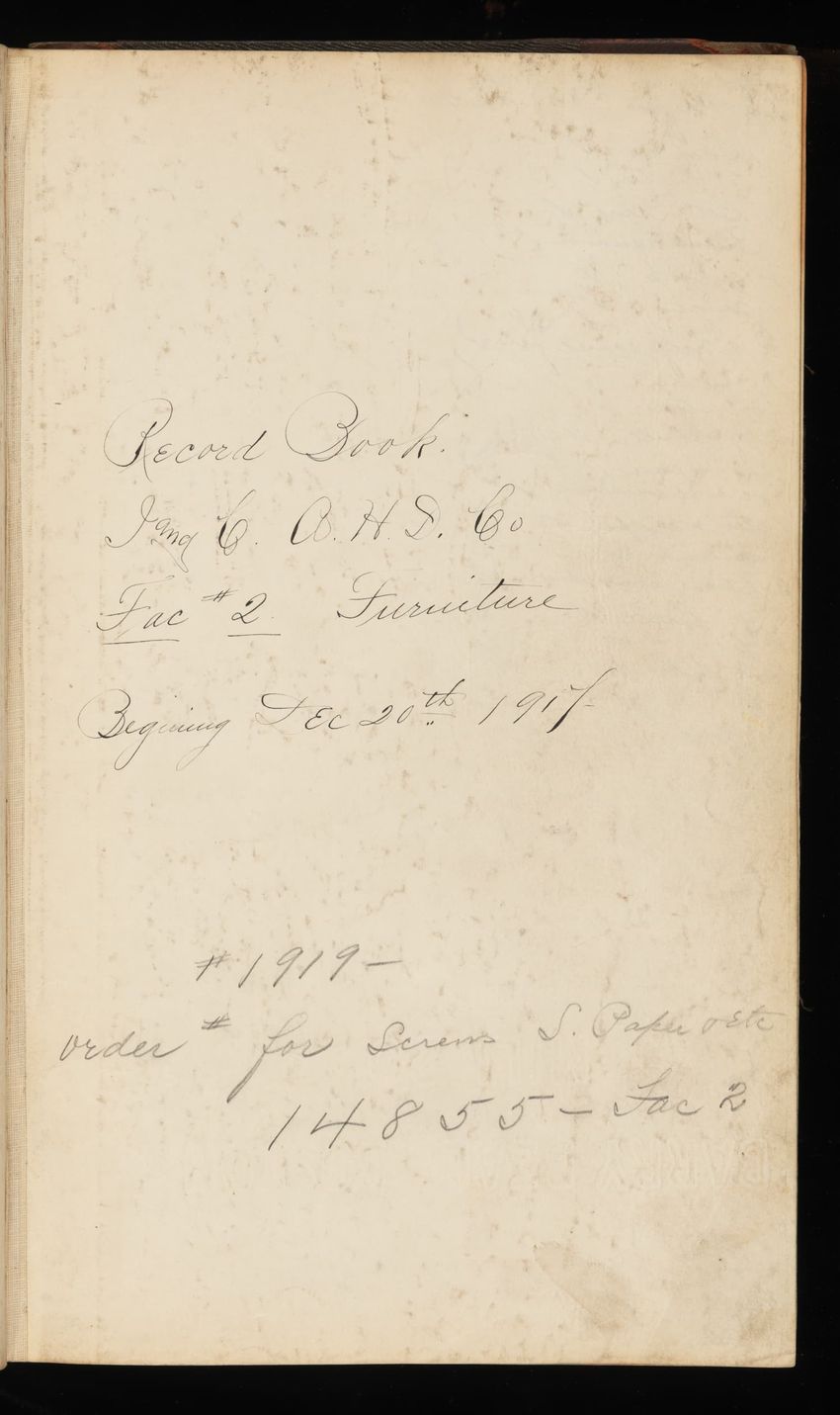 Bound journal containing 400 pages, ten of which are blank, which was prepared by Irving and Casson - A. H. Davenport Co. Journal contains handwritten records of two series of sales orders: June 4, 1915 to December 13,1915(orders #11401-20000), and December 13, 1915 to January 12, 1916 (orders #5-13...