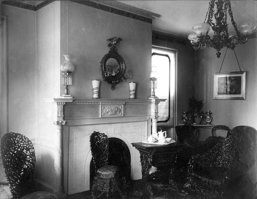 Interior photograph of the south-west parlor in the J.H. Morison House, "Bleakresidence," Peterborough, N.H..