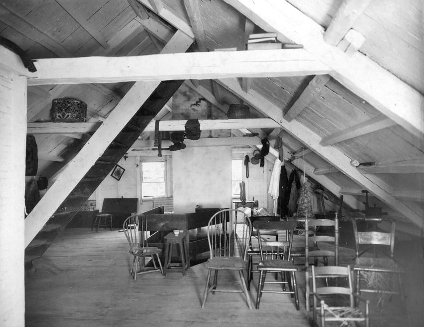 Interior photograph of the attic in the Aldrich House, Portsmouth, N.H.