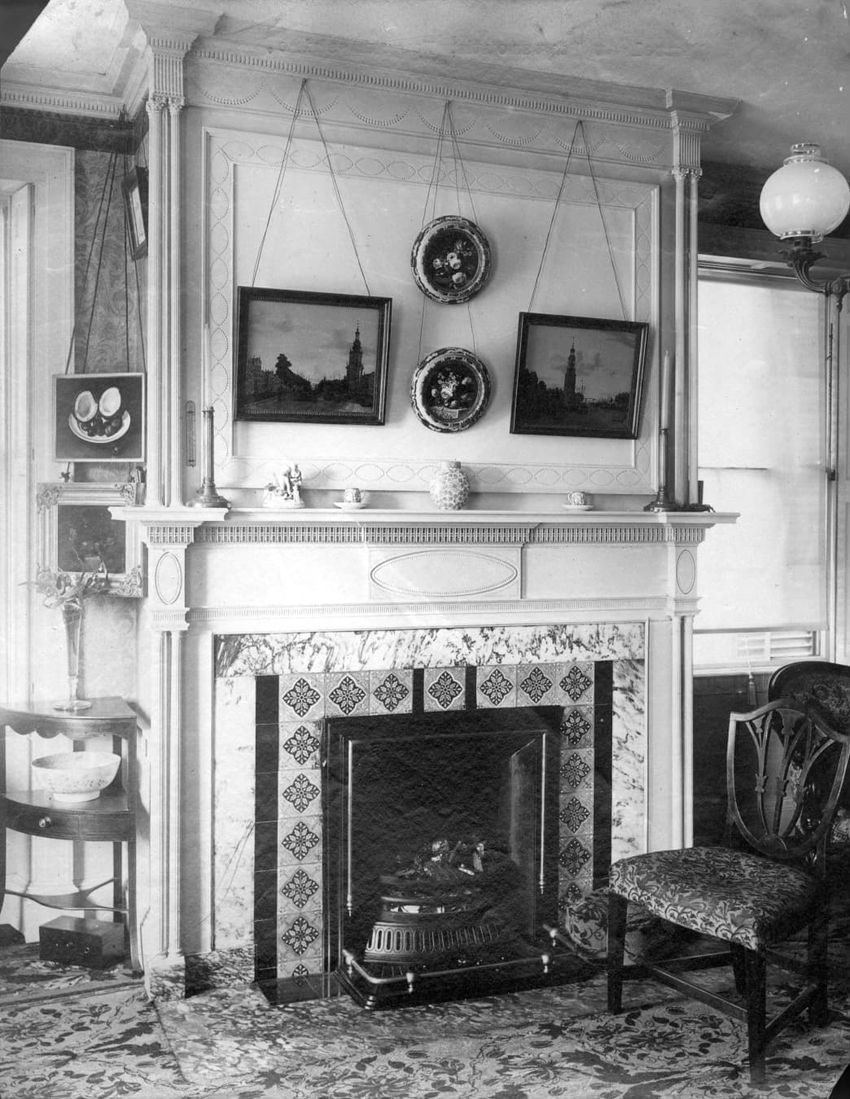 Interior photograph of a fireplace in a residence in Manchester, N.H..