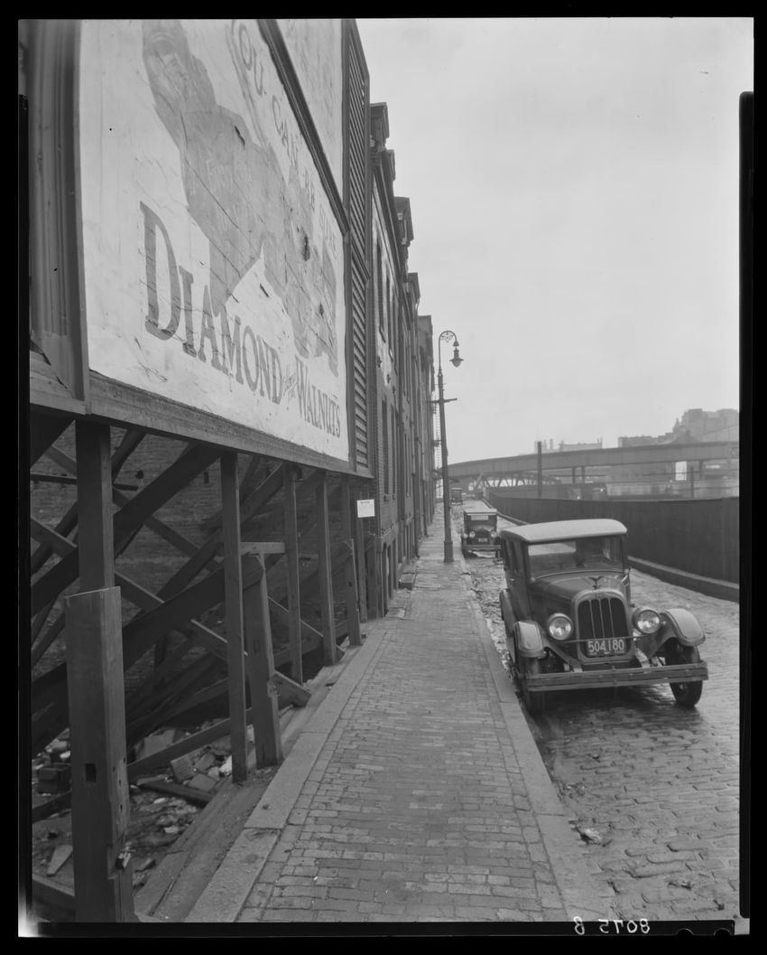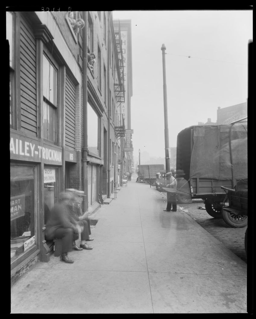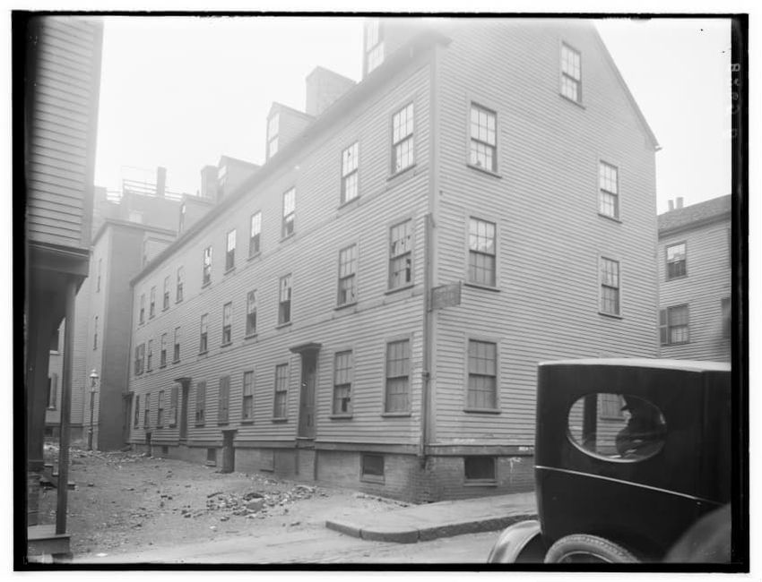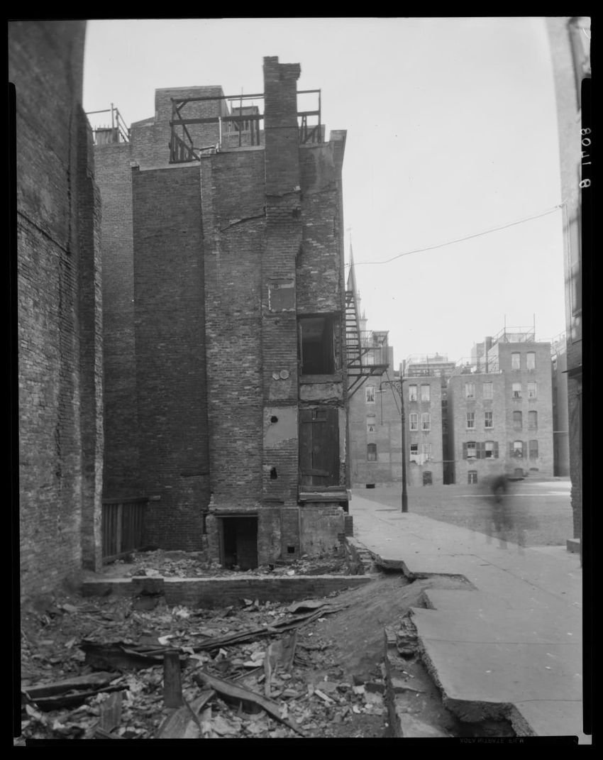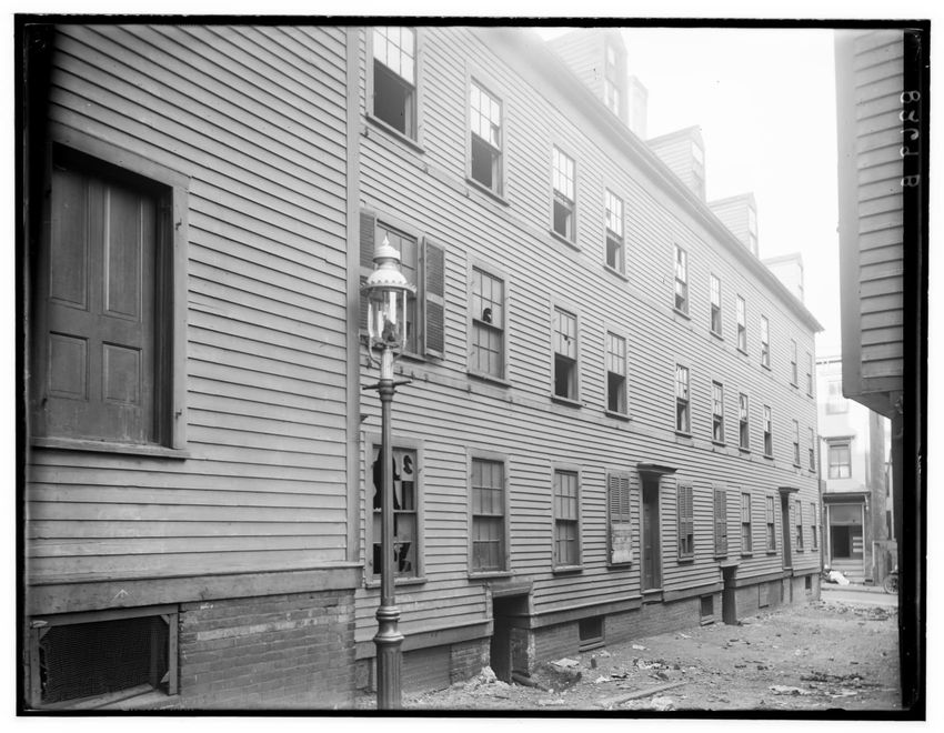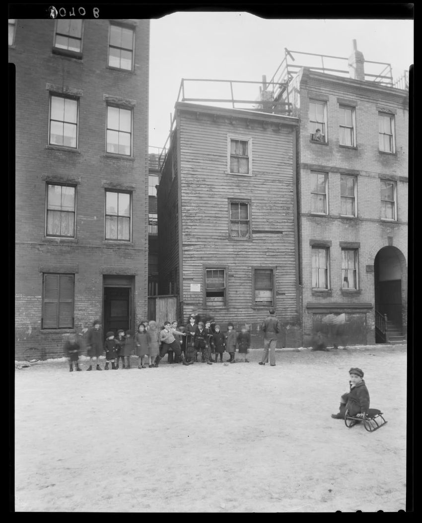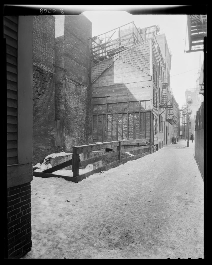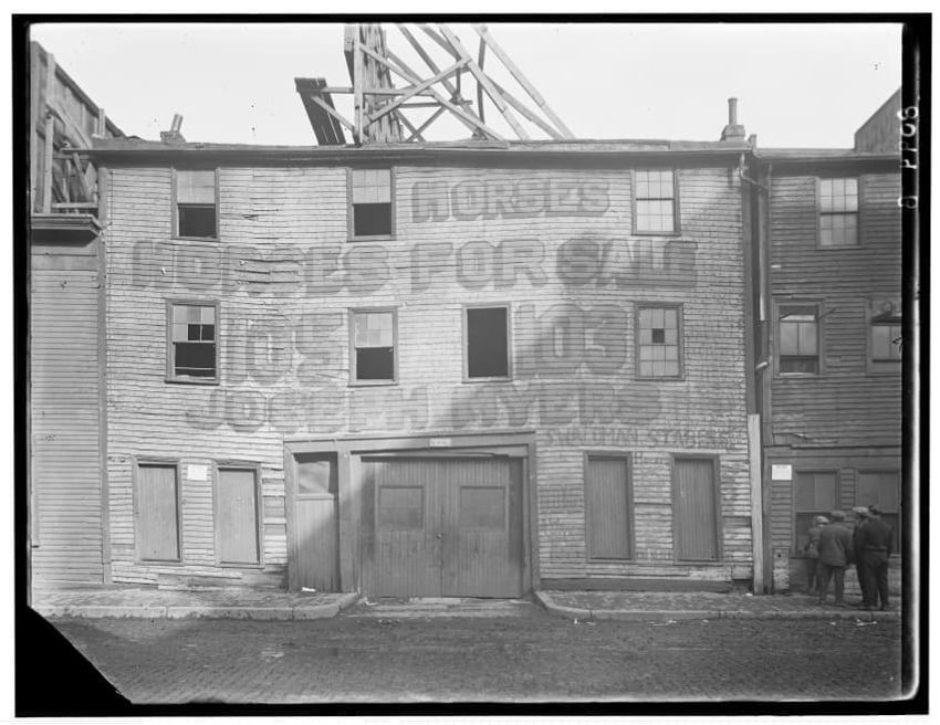 The image shows the exterior of a store located at 109 Beverly Street, Boston, Massachusetts. The building is a two-story structure with large windows on the ground floor. A sign above reads "Braman, D." and there are several signs displayed, including one announcing the property is for sale. An ele...