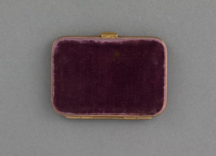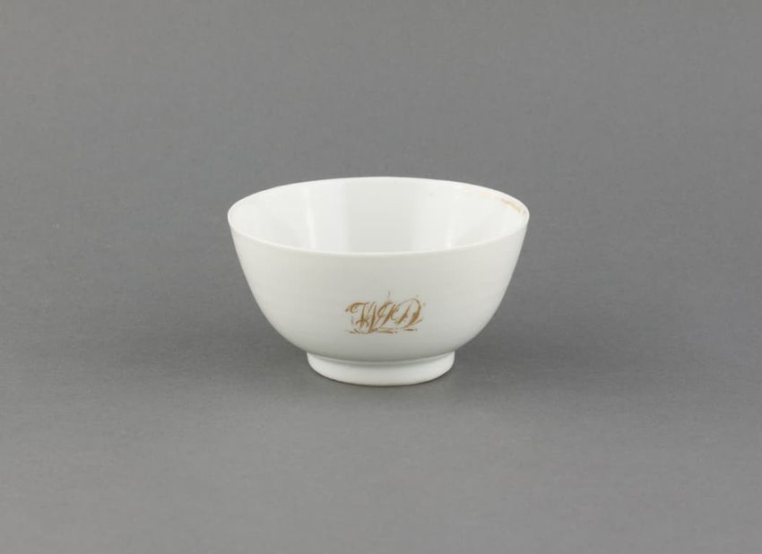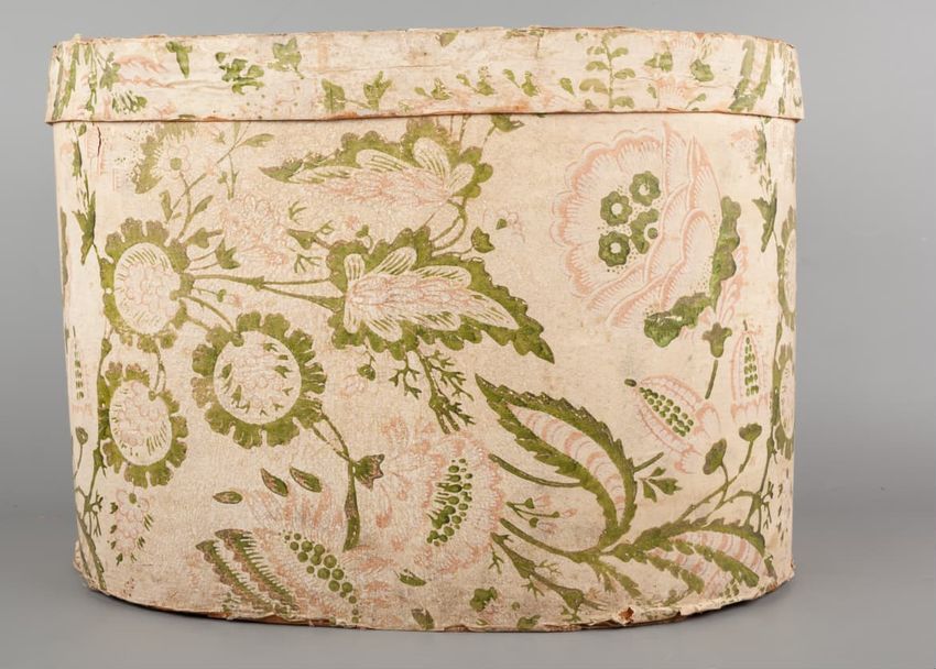 White; candlewicked design with central round medallion with potted flower. Smaller oval medallion above. Concentric borders of vines, rings, dots and grape vines; potted flower at bottom. Border of loops and dots; applied fringe.