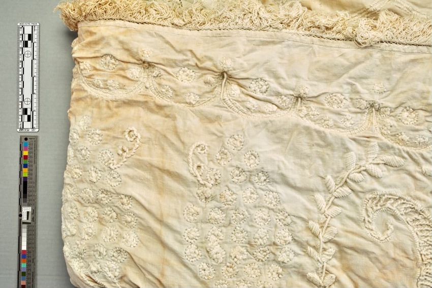 candlewicking (embroidering), cotton (textile), fringe, whitework