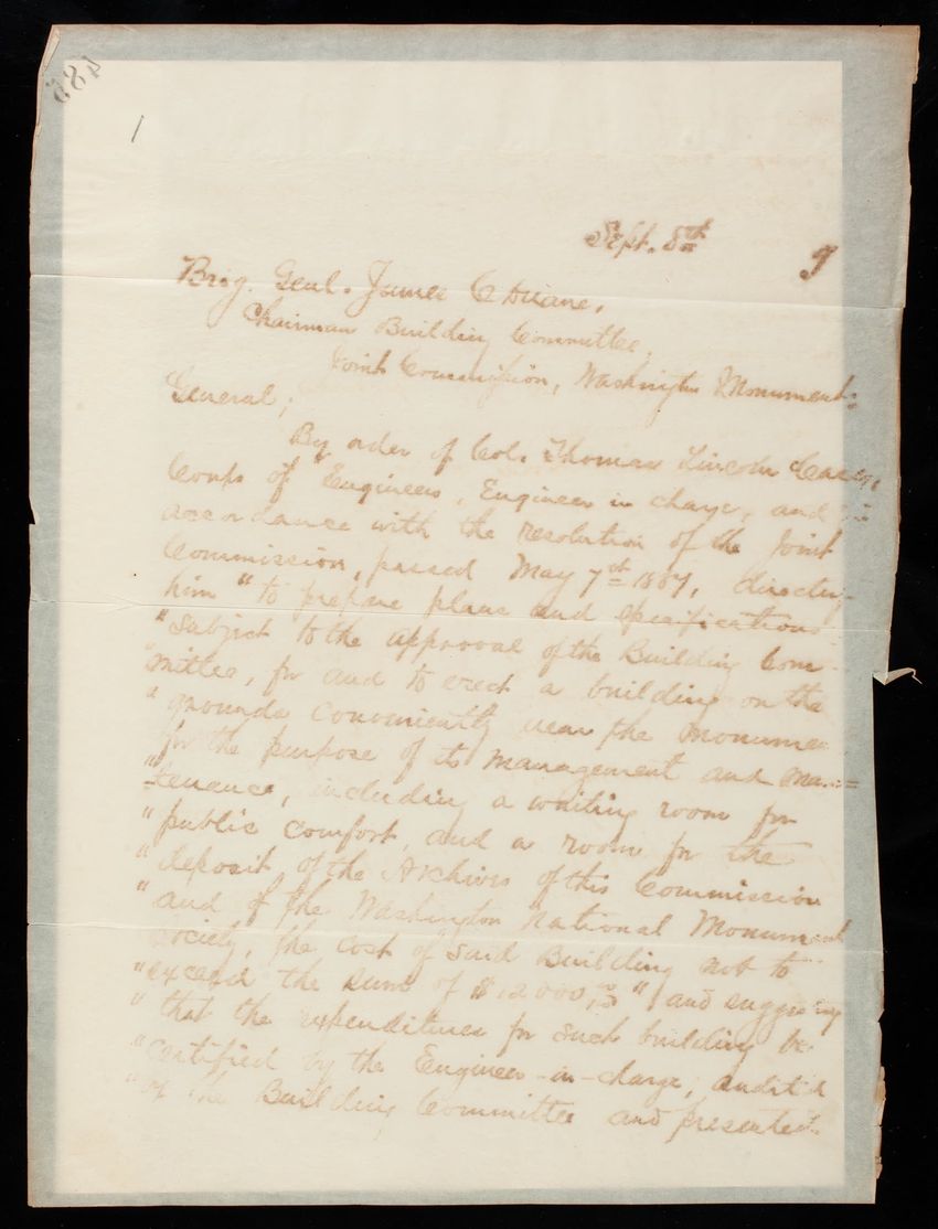 Subseries C, Notes, 1878-1885, undated (#40.10-40.21, 40.26), contains letter drafts, memoranda, notes, calculations, sketches, project expenditures, work diaries, and printed articles on the foundation; soil and clay; marble and stone; obelisk; marble pyramdidion; roof; columns; buttresses; lighten...