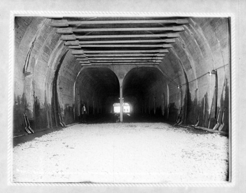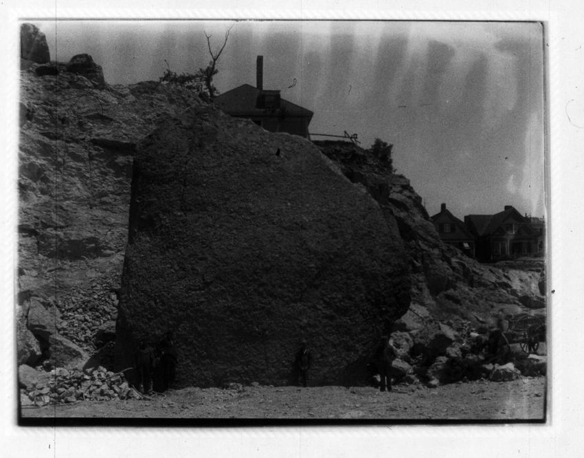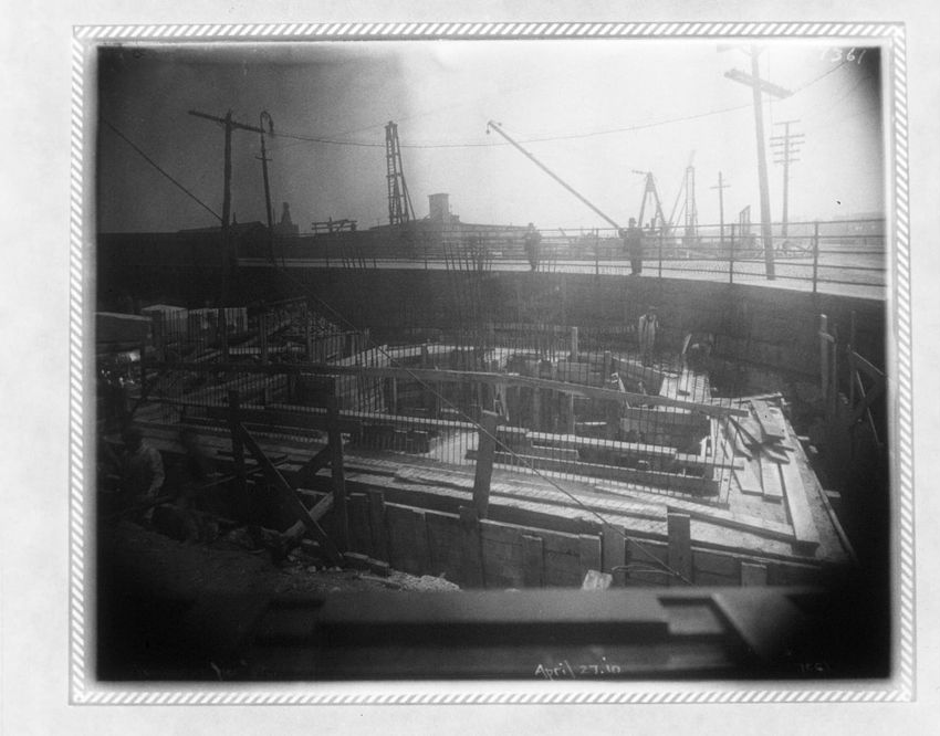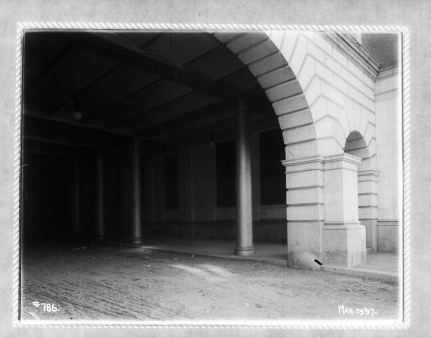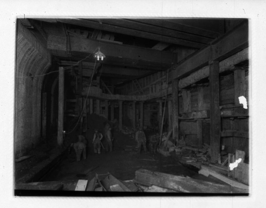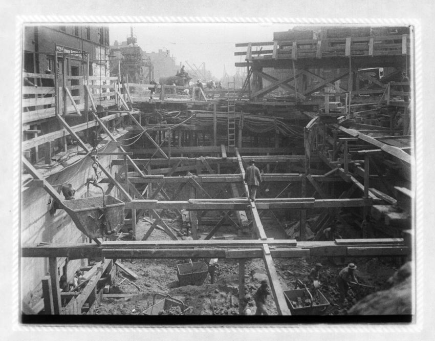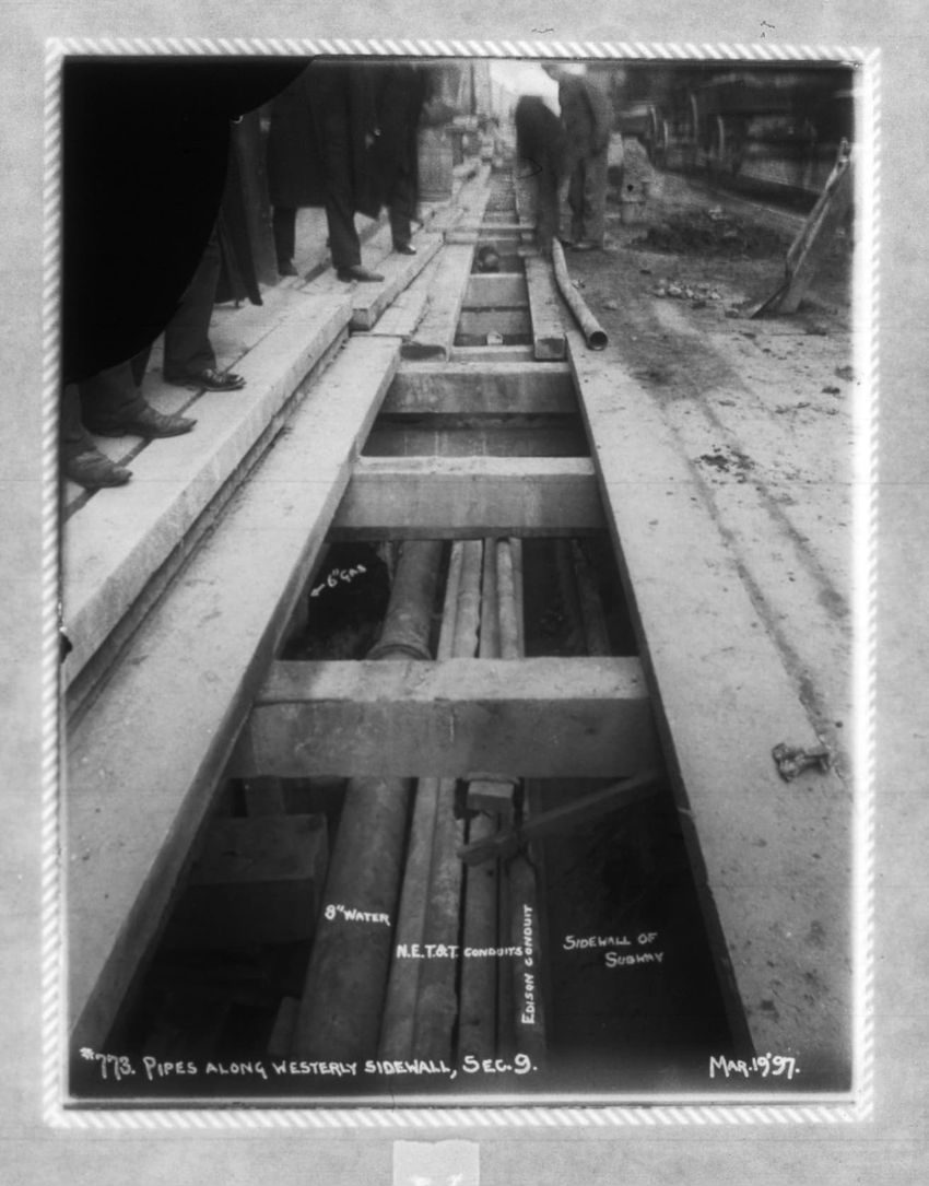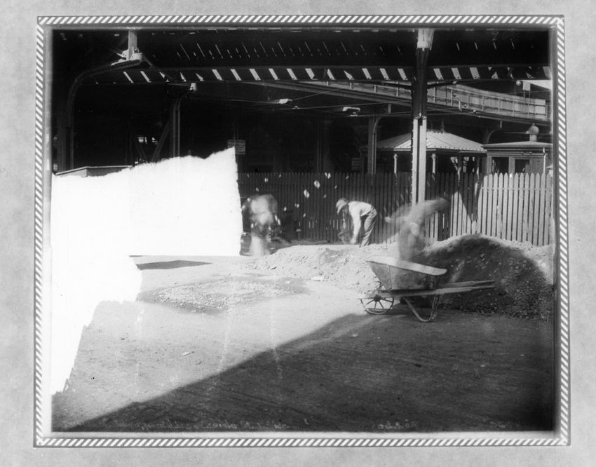 The incline taking the streetcar line underground on Boylston Street can be seen. The Hotel Thorndike is on the right and the Public Garden is on the left in the image.