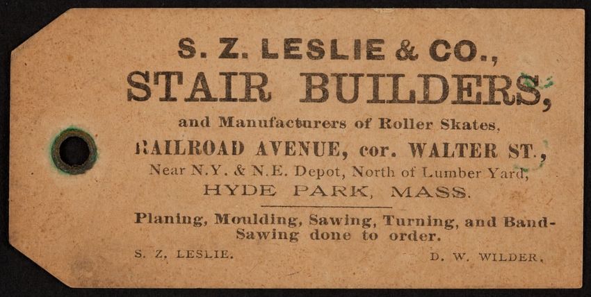 Trade card for S.Z. Leslie, stair builder, Railroad Avenue, corner Walter Street, Hyde Park, Mass., undated