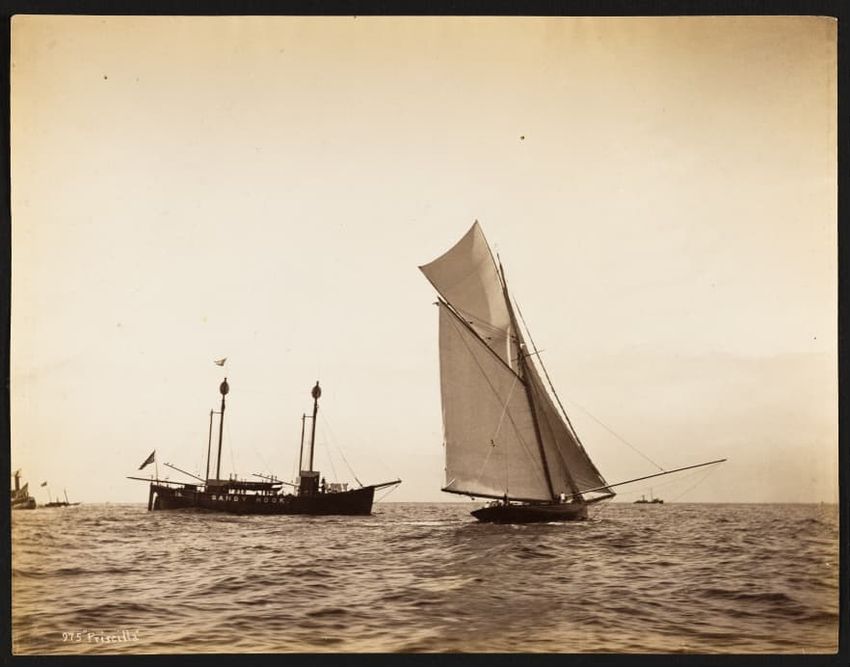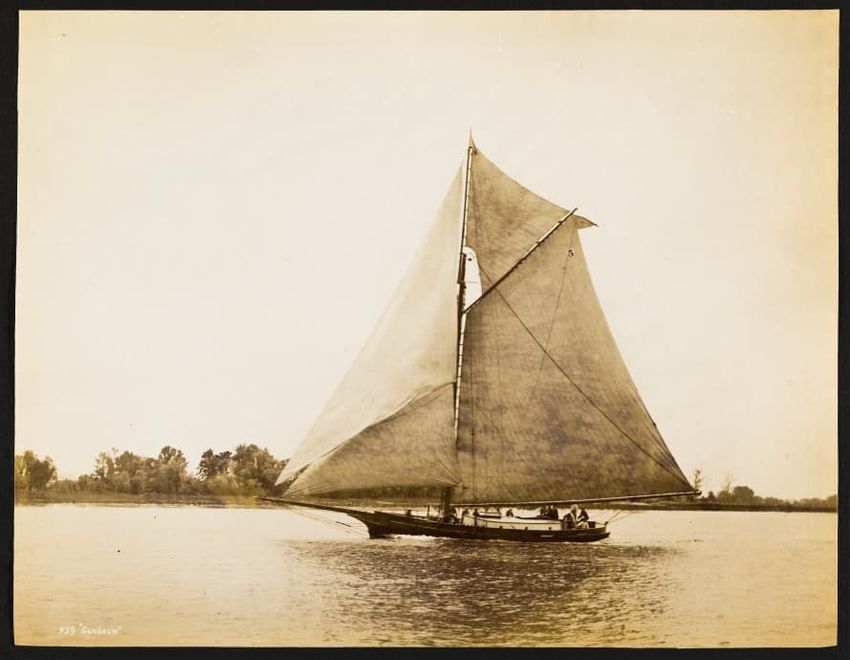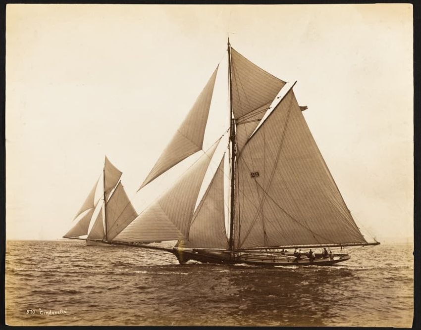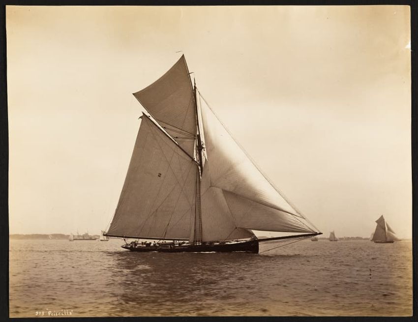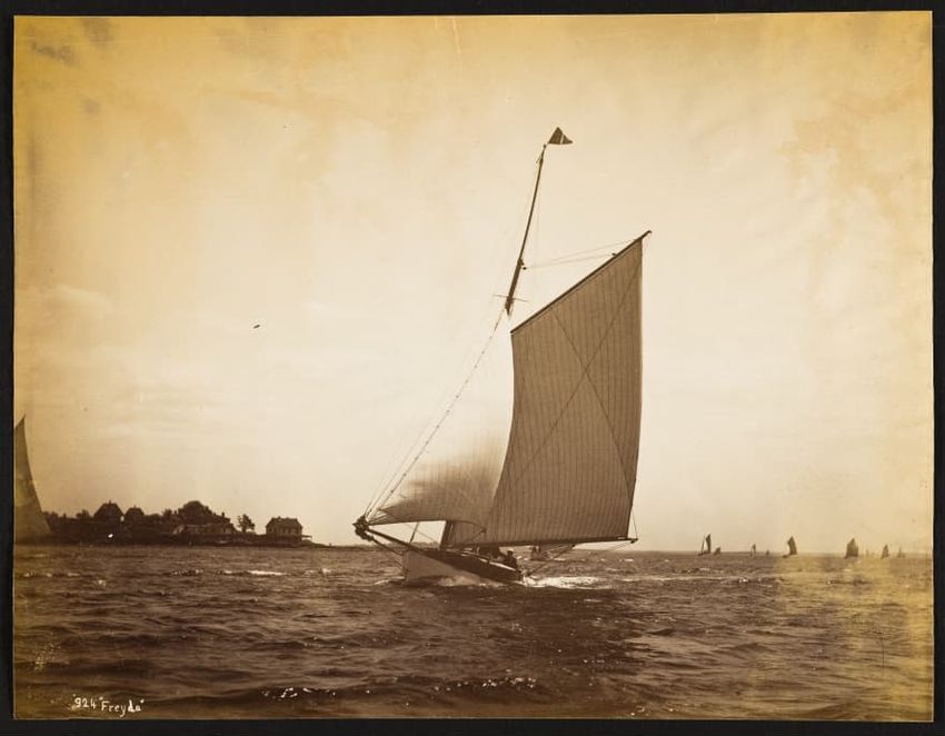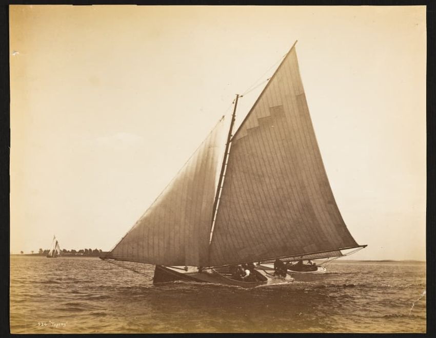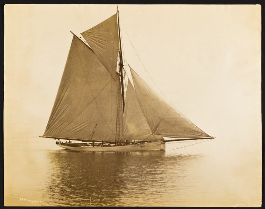 Mayflower was a wooden centerboard sloop designed by Ed. Burgess and built by Lawley in 1886 as a successful defender in that year's America's Cup races. Launched May 6, 1886. LOA 100ft, LWL 85-7ft.