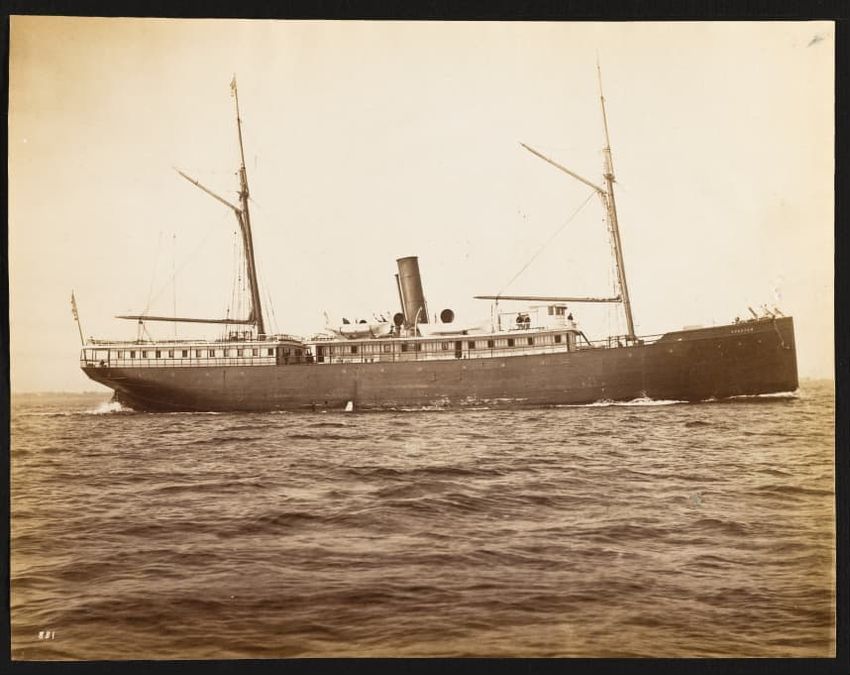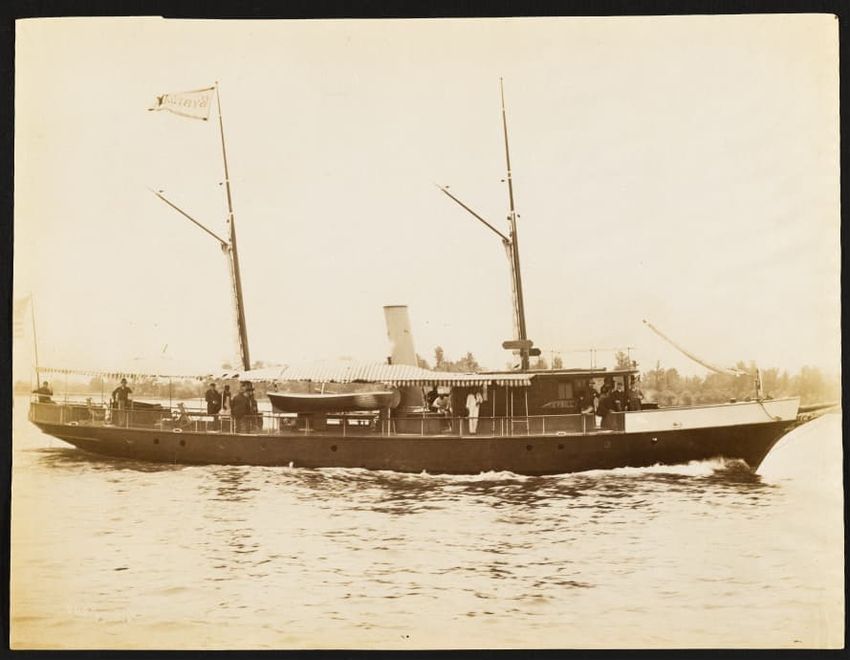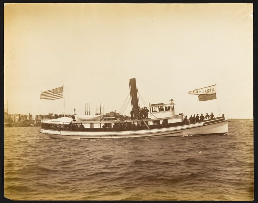 Trial trip of the Mayflower. "N. L. Stebbins, the Boston marine photographer had a tug down the Ba...