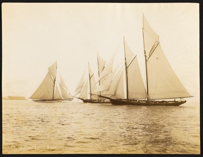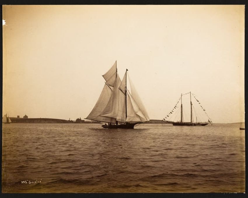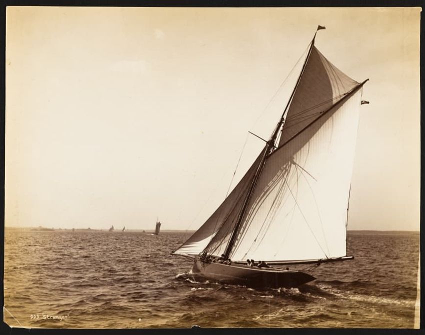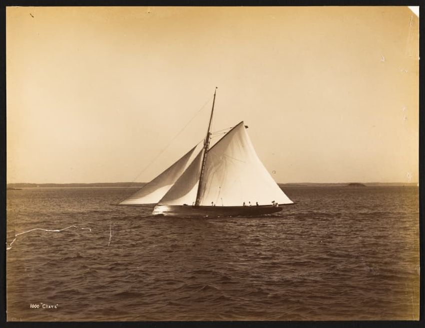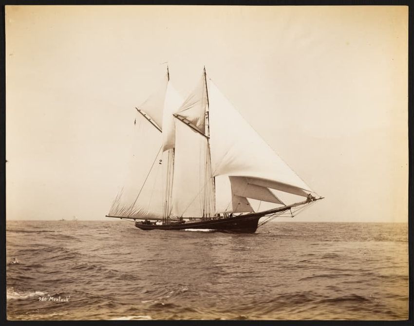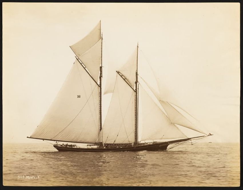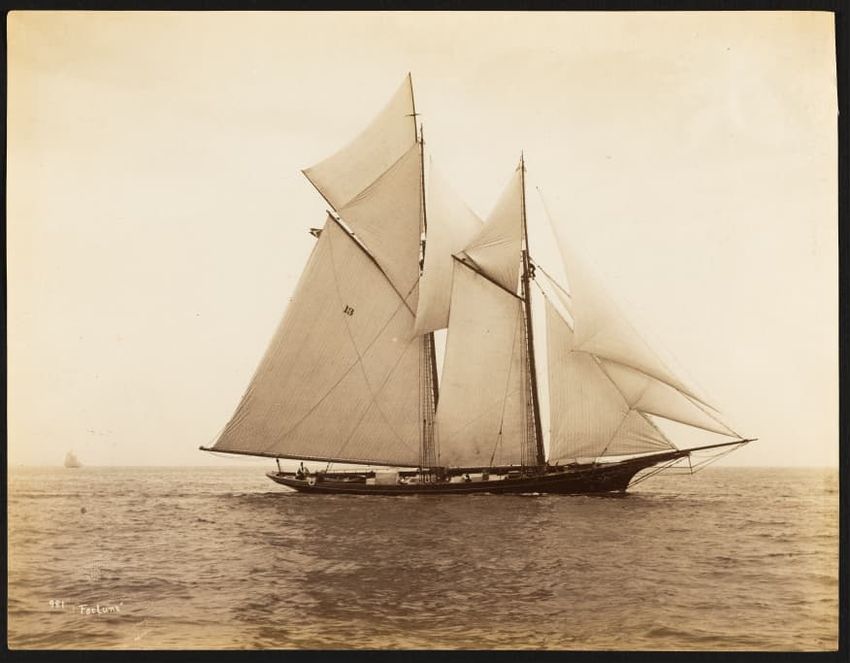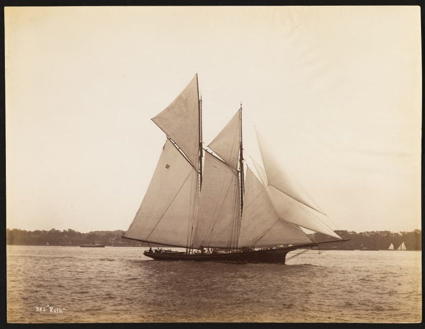 From the American Yacht List 1885, p. 123: "Ruth, CB [centerboardl], Schr. [Rig]; Bailey [Sailmaker's Name]; 171.58 [Custom House Tonnage. Old]; 89.68 [Custom House Tonnage. New]; 98.6 1/2 [Length]; 93.4 1/4 [W.Line]; 23.3 3/4 [Breadth]; 8.11 5/8 [Depth]; 7.6 [Draught]; Noank, Conn. [Where built]; R...