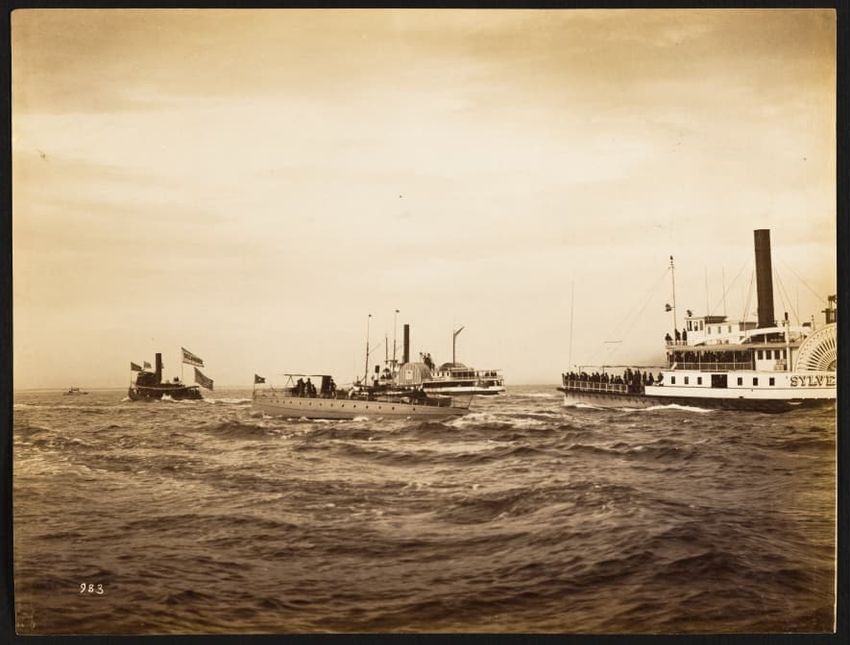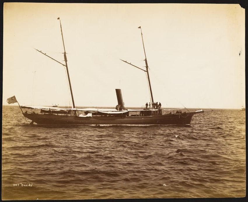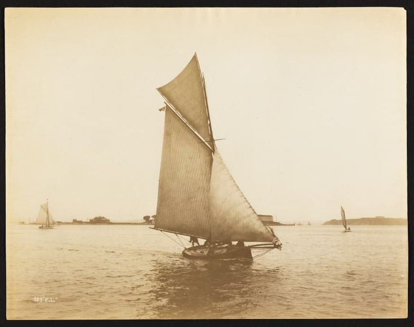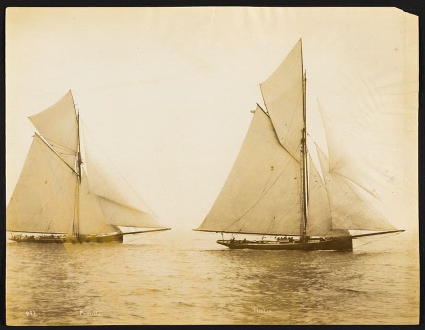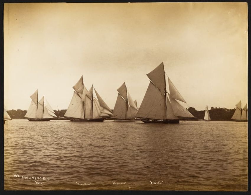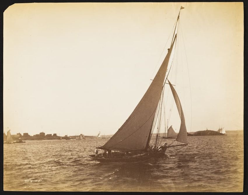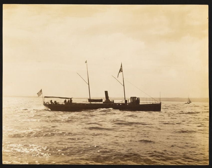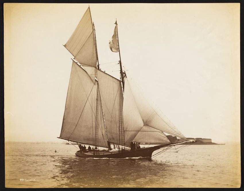 From the American Yacht List 1885, p. 123: "Ruth, CB [centerboardl], Schr. [Rig]; Bailey [Sailmaker's Name]; 171.58 [Custom House Tonnage. Old]; 89.68 [Custom House Tonnage. New]; 98.6 1/2 [Length]; 93.4 1/4 [W.Line]; 23.3 3/4 [Breadth]; 8.11 5/8 [Depth]; 7.6 [Draught]; Noank, Conn. [Where built]; R...