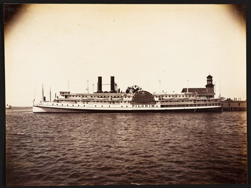 Pilgrim was a Long Island Sound steamboat built by John Roach of Chester, PA in 1882 for the Fall River Line for service between New York, Newport, and Fall River. LOA 390ft. Beam 50ft. One of the most famous Long Island steamboats, she served the Fall River Line until 1908 when the Commonwealth was...