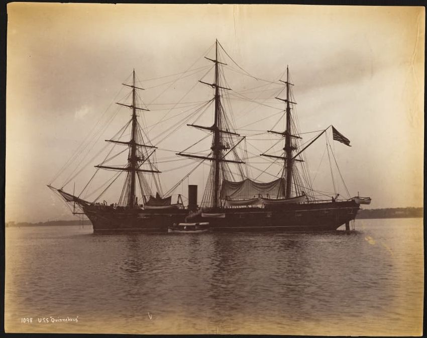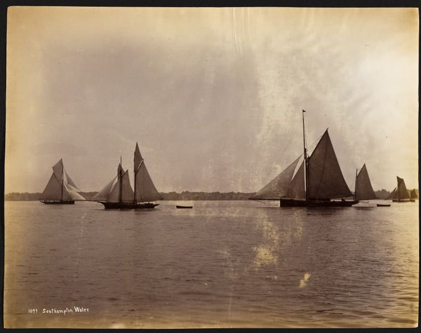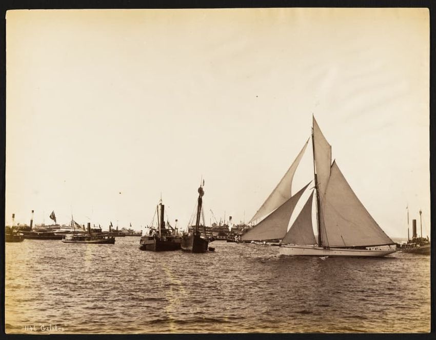 First race for the America's Cup 1886, Mayflower won against GalateaPassengers on all decks.