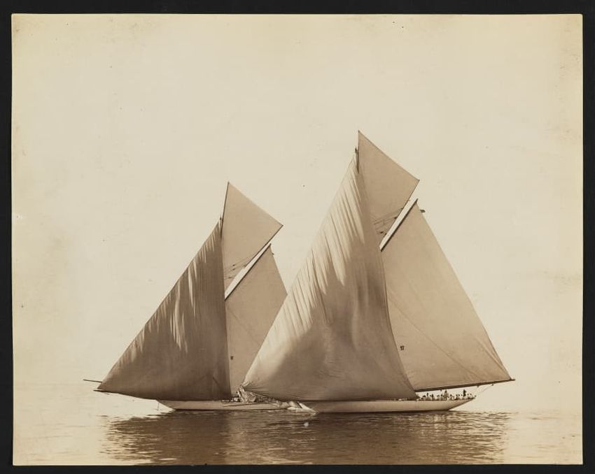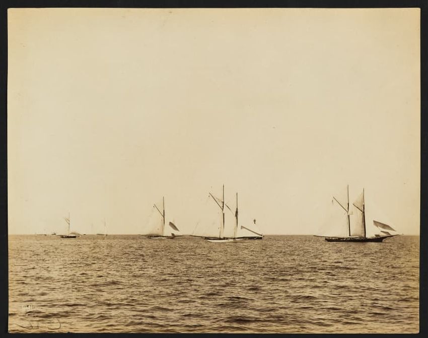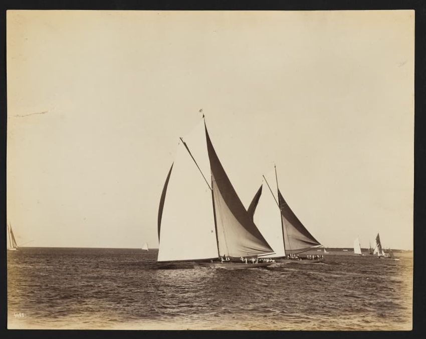 See also p. 286 of this index (neg. nos. 4599-4674, races)See also: Henry Peabody R.A.Y. #101 (Valkyrie) and #106-110 (Valkyrie and Vigilant)NYYC 50th anniversary cruise