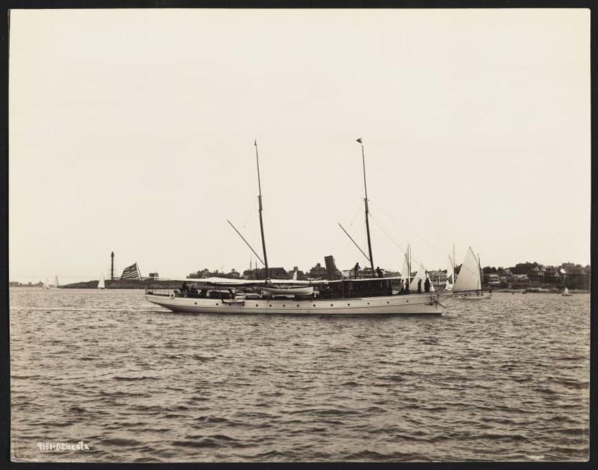 See also: Henry Peabody R.A.Y. #63, p. 17"The Rudder", Mar. 1902, p. 95 contains another Stebbins photo of Babboon with neg. no. 9166 (however, see this index neg. no. 9166, Telka)
