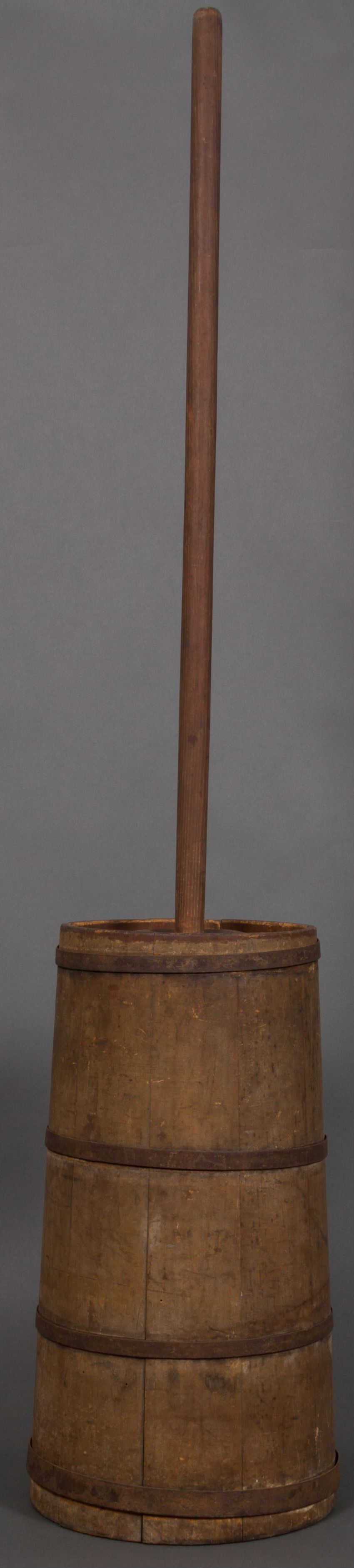 Tapered strap; spear head. Bar thickens at base of head. Barrel side only. Five nail holes; paint evident.