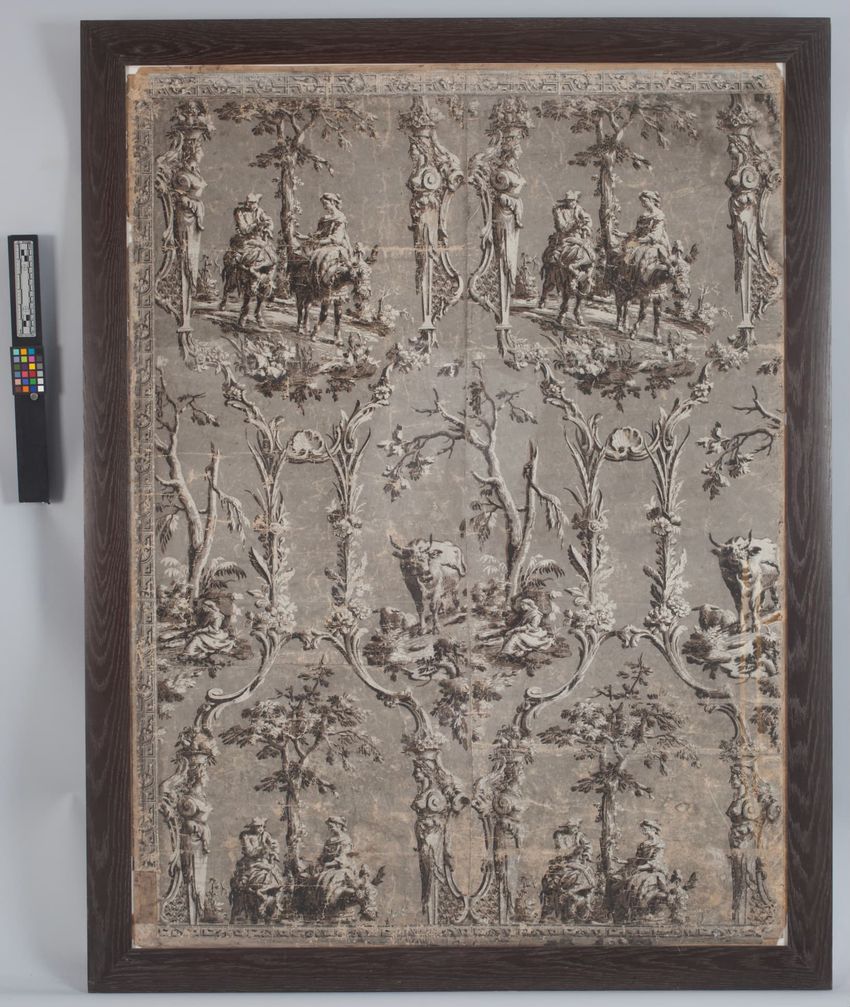 lacquering, paper (fiber product), piercing, satin, sequins (spangles), silk (textile), wood (plant material)