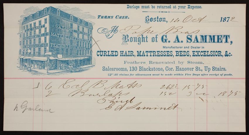 The New England Carpet Company is located on Hanover Street in Boston, Massachusetts.