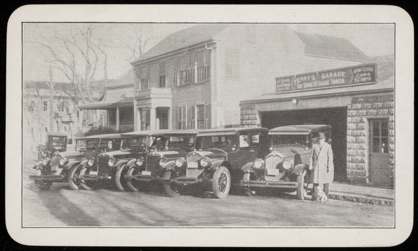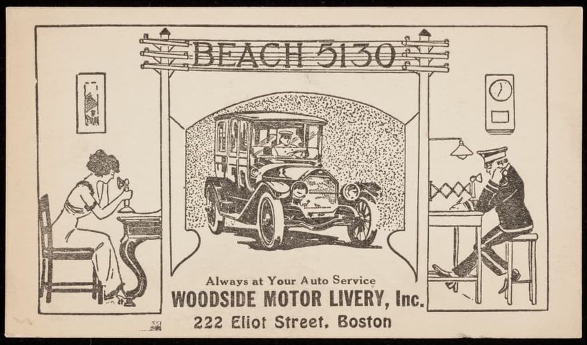 The card is a blotter for your check book, courtesy of Fisk Tires. The image was created by Norman Rockwell for an ad campaign. The caption reads "Time to re-tire get a Fisk,"