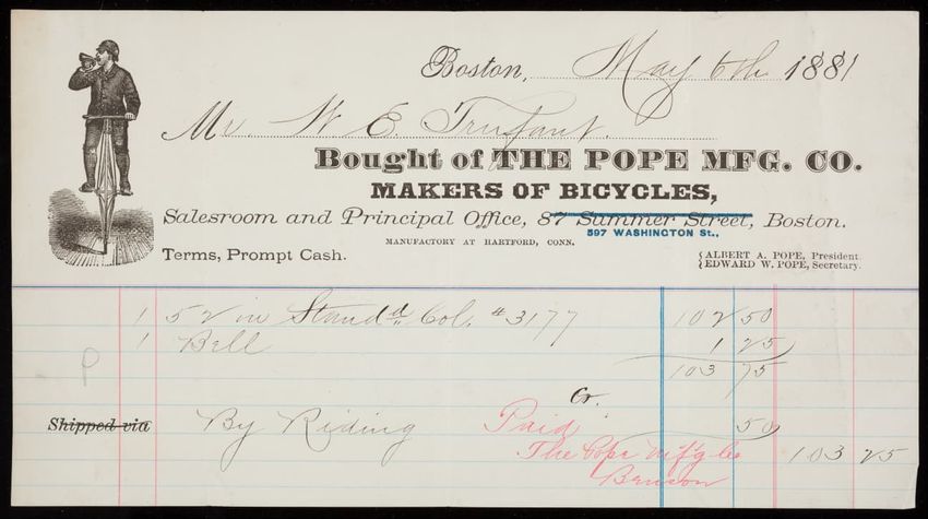 Photograph of an unidentified residential street possibly in Wakefield, Rhode Island. The street is shaded by numerous trees on both sides, and the facades of several houses can be discerned. There is a carriage in front of one of the homes, most likely horse-drawn, and the street is lined with seve...