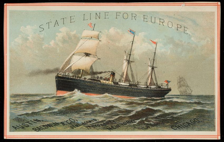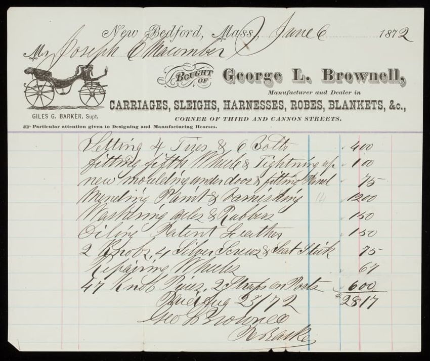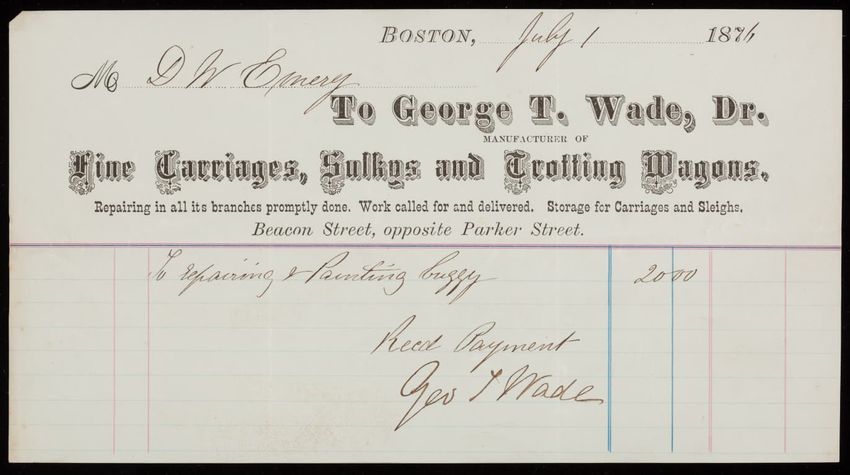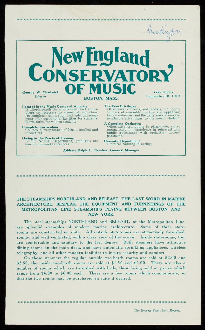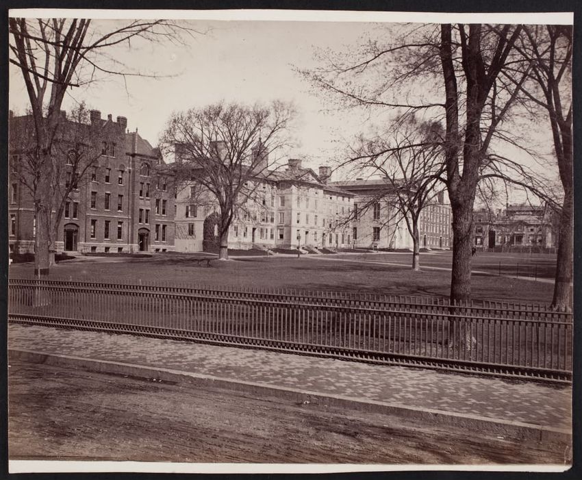 Photograph of of house with the first floor converted into shops, including a cigar store, men's furnishings store, and fine footwear. There is a poster affixed to the side of the house advertising Sousa's Band. Signs for shops on the rest of the street include pharmacist's and an optician. The uppe...