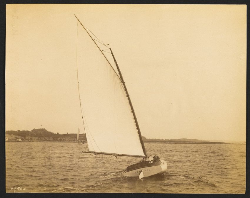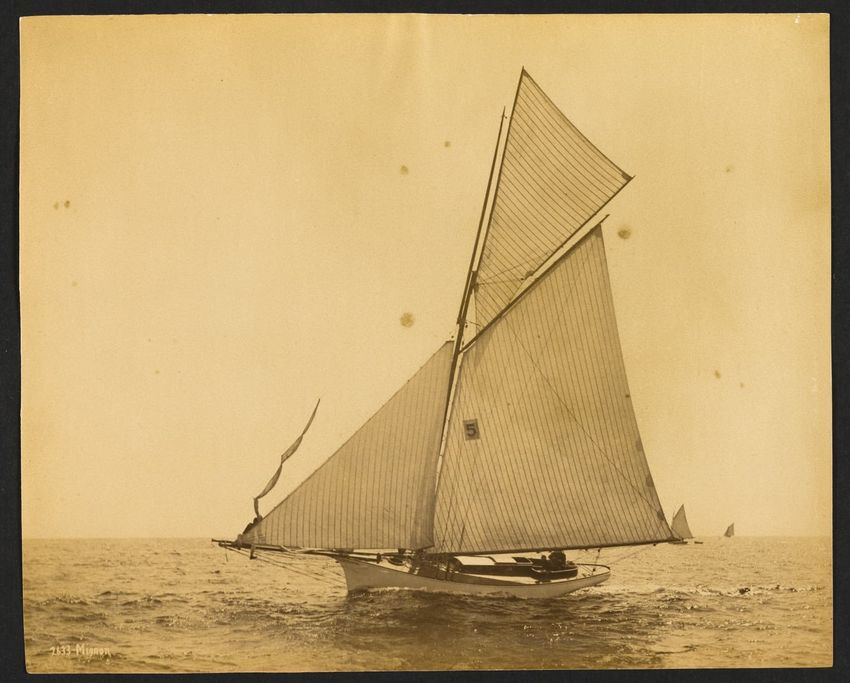 See also: Henry Peabody R.A.Y. #66 & p. 17 (Chiquita); HP-M-19 + 20, HP-M-8 (Minerva); R.A.Y. #54 (Pappoose)"c" for neg. copy was added based on handwritten "c" in duplicate entry for Minerva. Date is probably around July/August 1889 when a series of races for 40-footers was held in Marblehead.