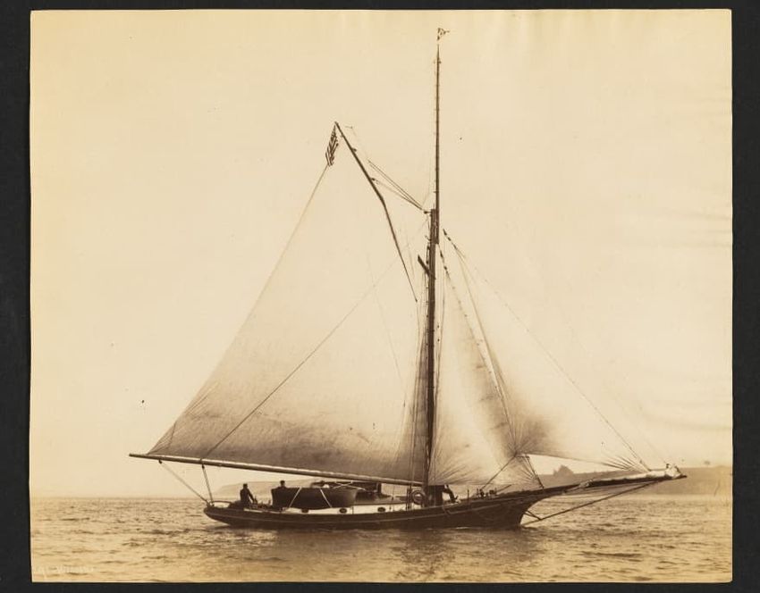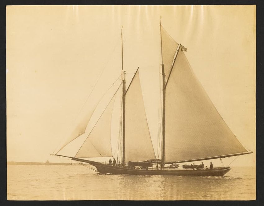 Date is probably August 1889 when the new Burgess-designed schooner Fredonia sailed with the NYYC cruise
