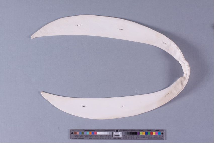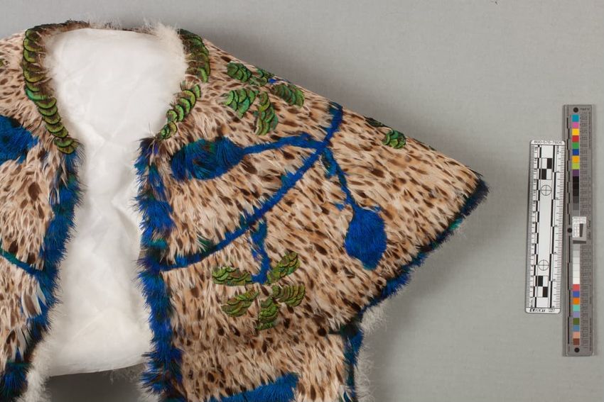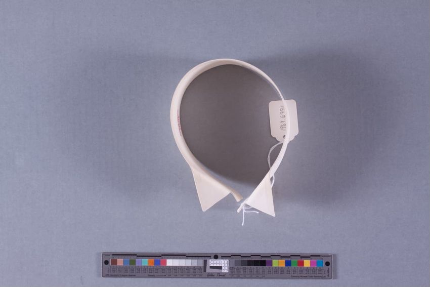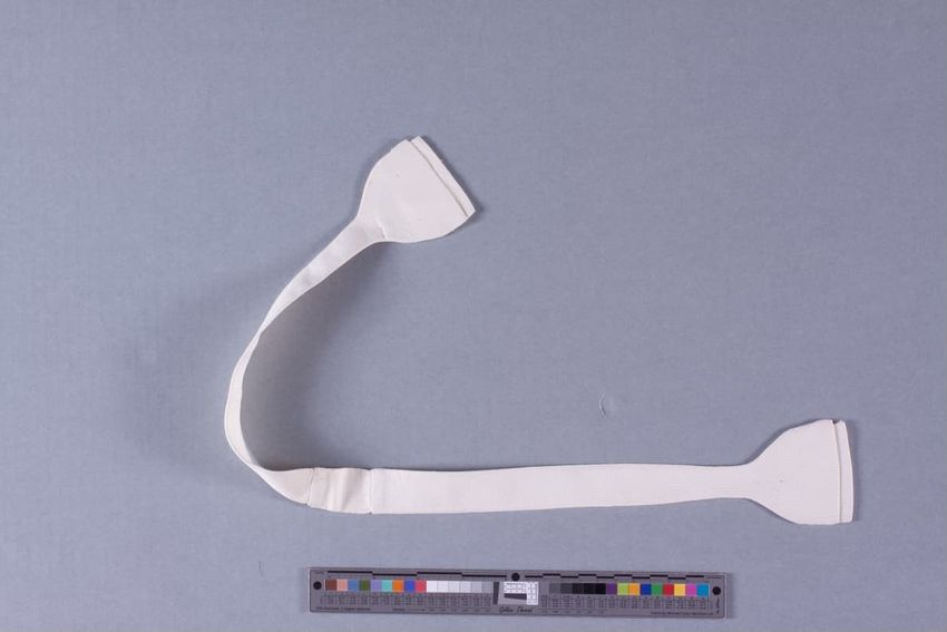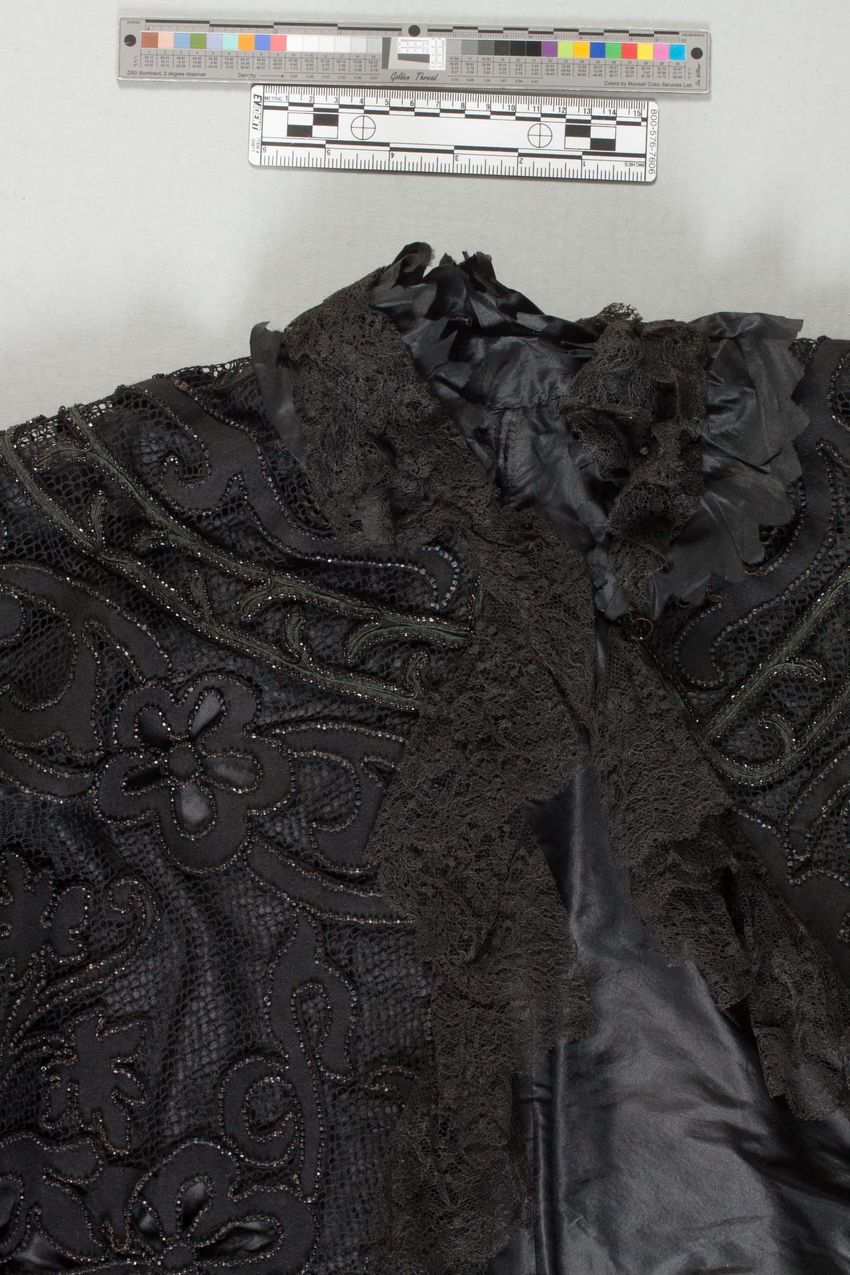 Red cotton; square shape; bouquets of wildflowers in each corner, with border of shields in various shapes, sizes and colors, representing towns/cities in Switzerland; in blues, yellow, green, orange; narrow border of stripes in white, black, and orange.