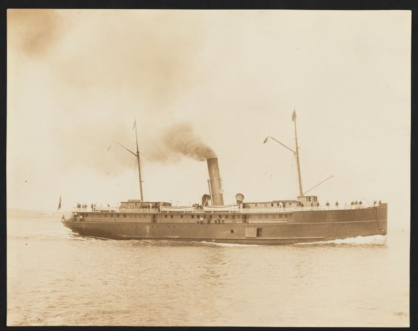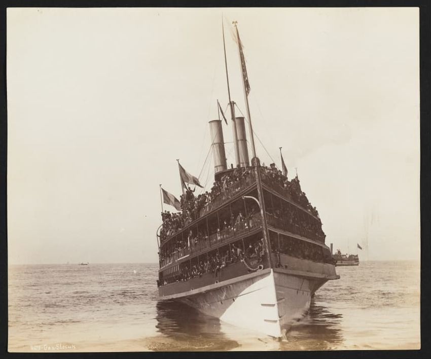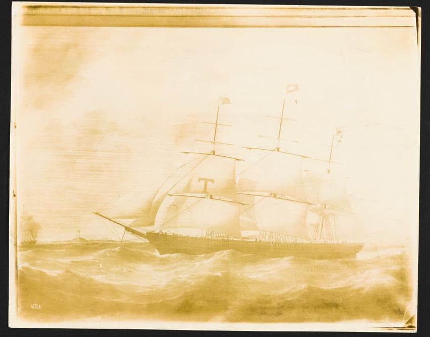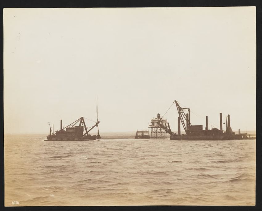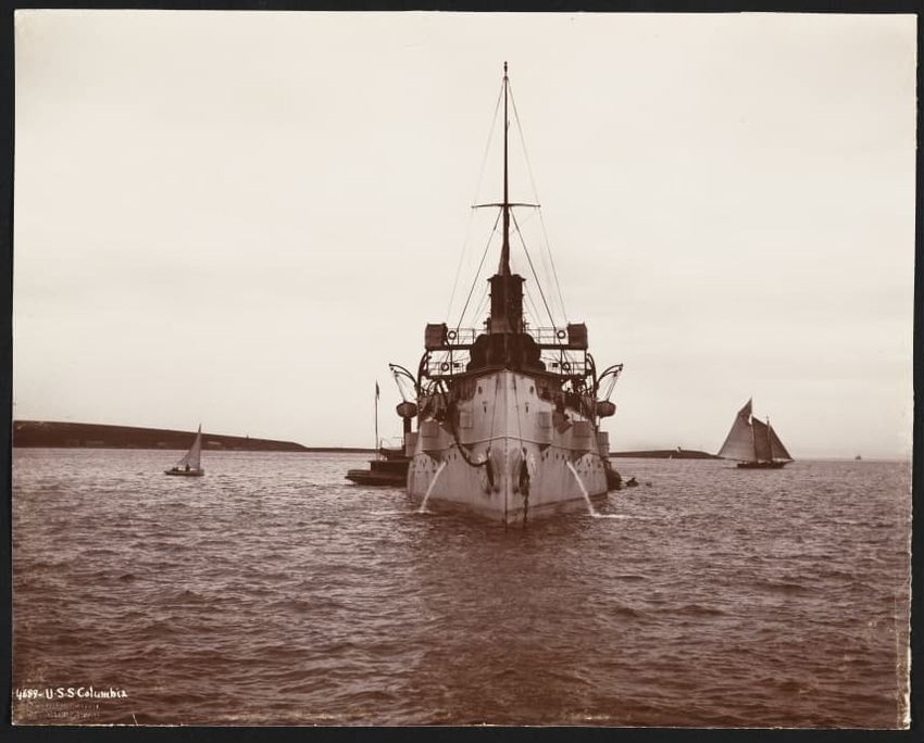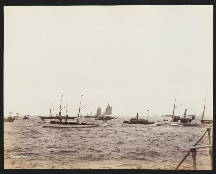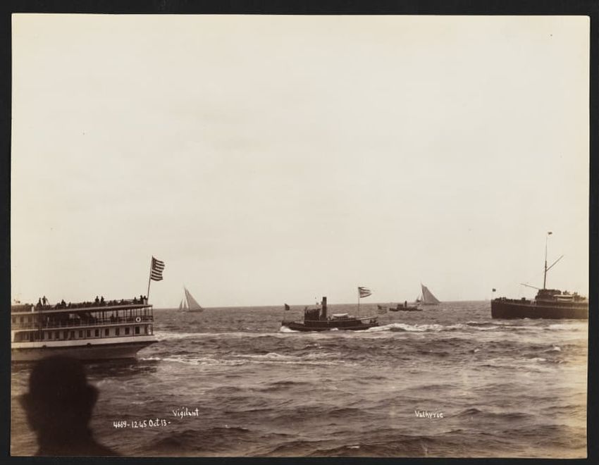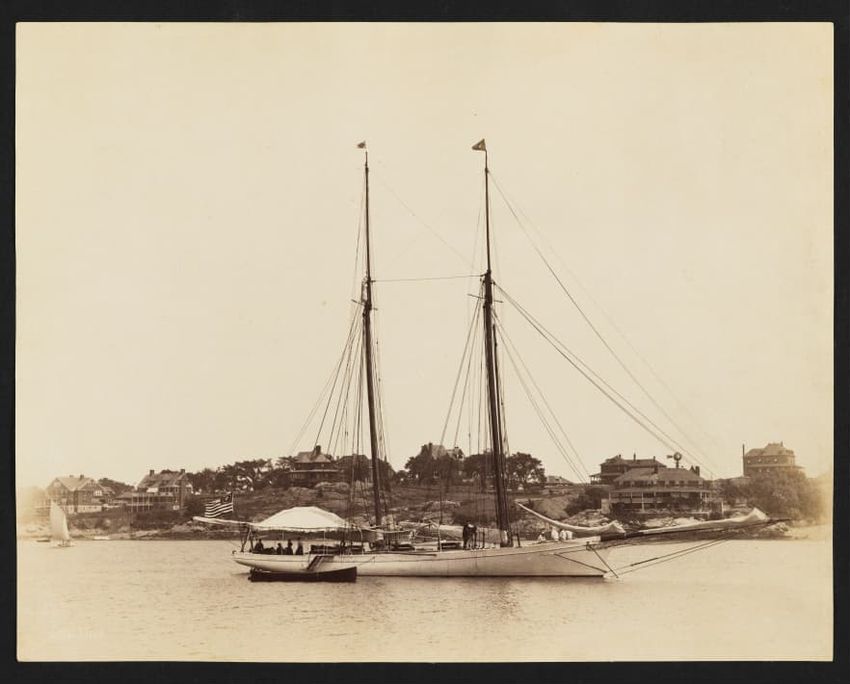 Handwritten entry; apparently exposed at time of collision with sch. John S. Ames, Oct. 25, 1893 in Channel near Bay [sp?] Light, Boston Harbor, Info supplied by William Quinn, Orleans [sp?] [rest unreadable]Neg. no. 4684 is listed twice, once as U.S. Baker dated 10/13/93, and also as a handwritten ...