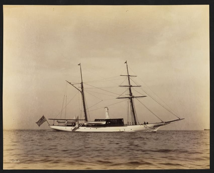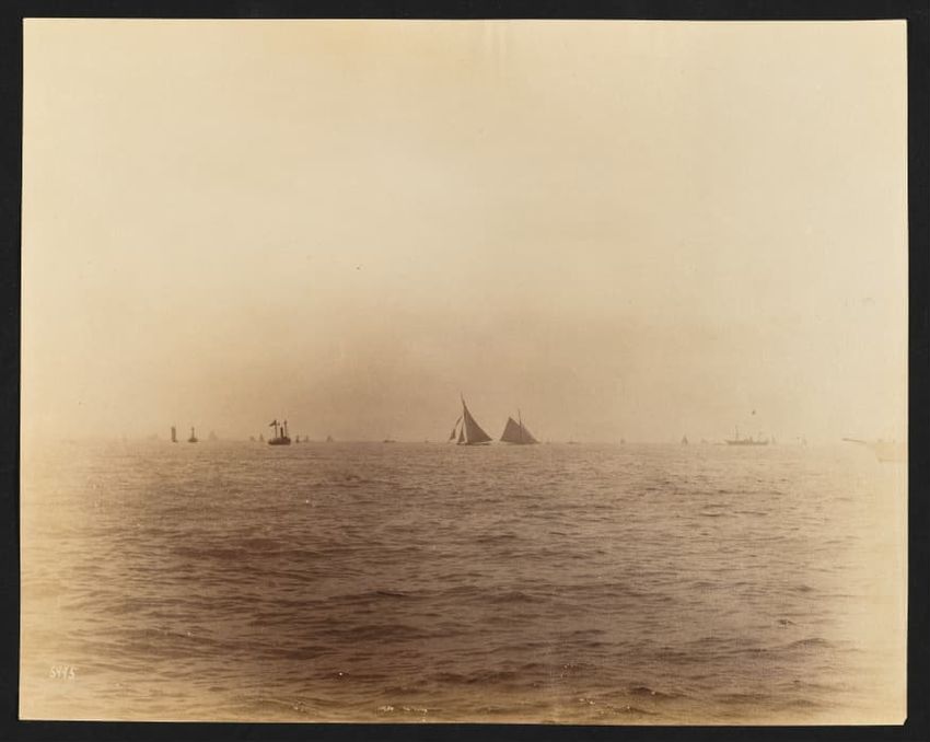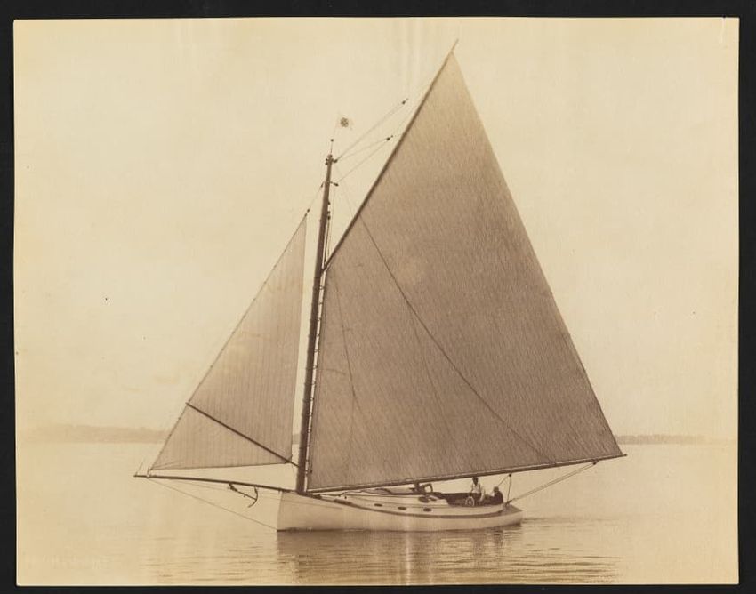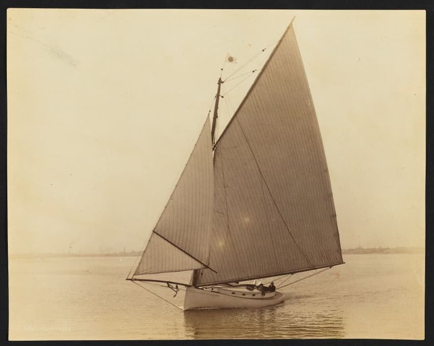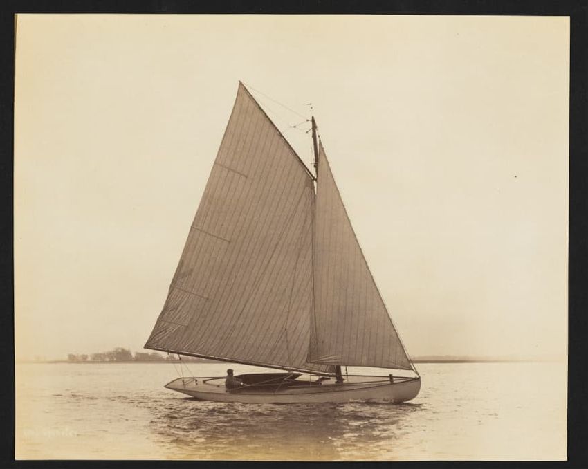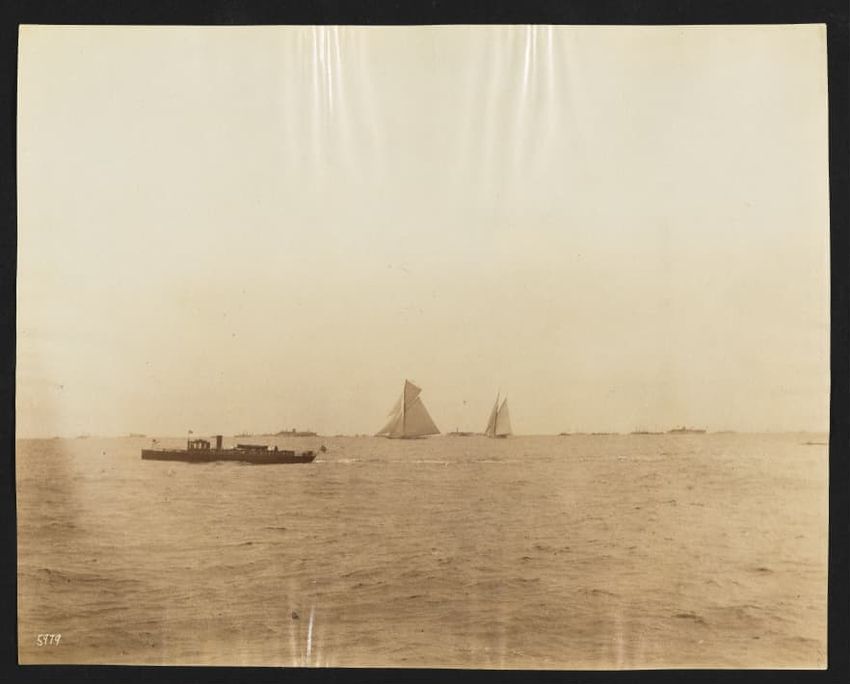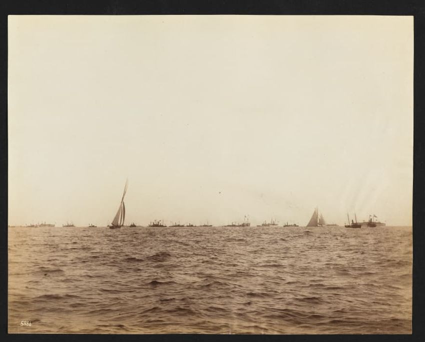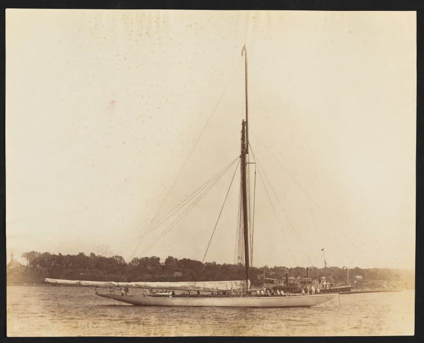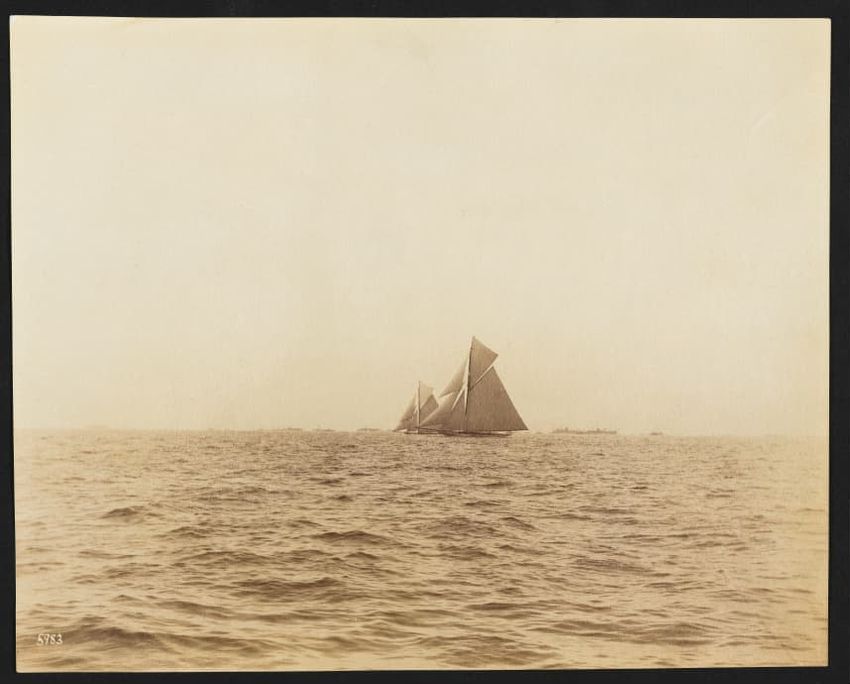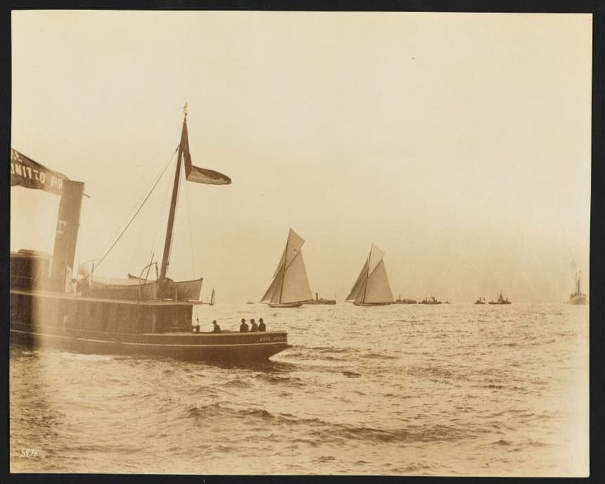 First America's Cup race between Defender & Valkyrie III, Defender wonDefender, designed and built in 1895 by N. G. Herreshoff to defend the America's Cup against Valkyrie III. Her bottom was polished bronze, but her topsides, deck beams, and some of her deck framing were aluminum (making her a gian...