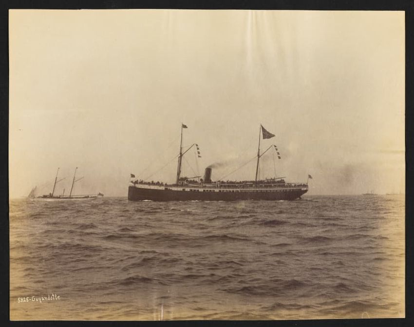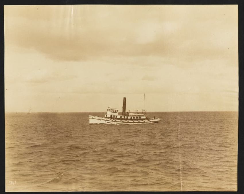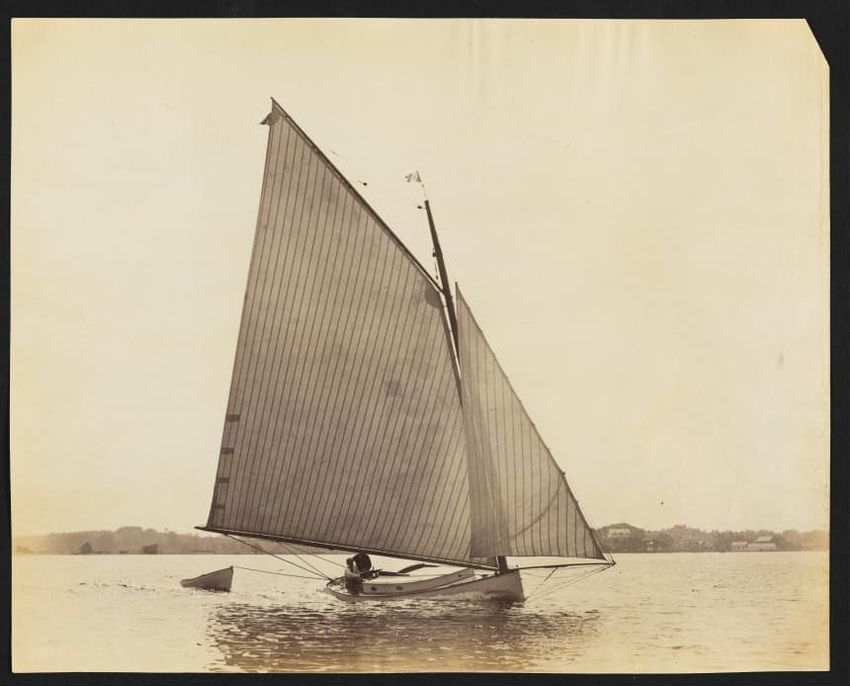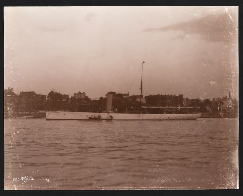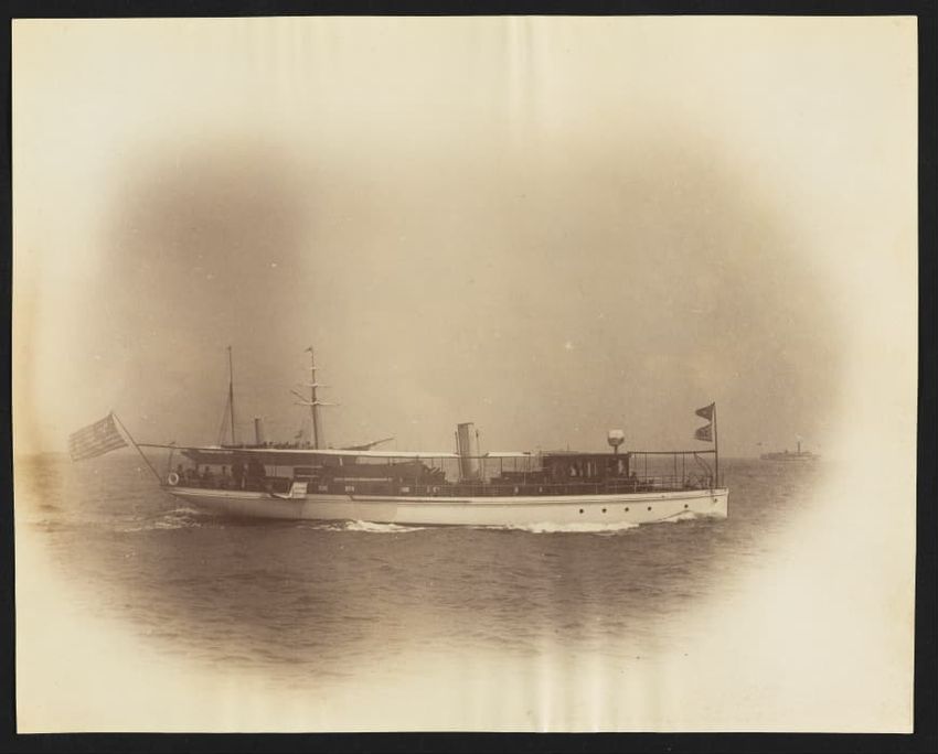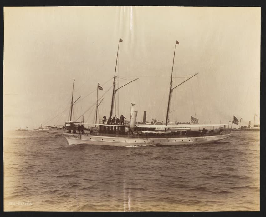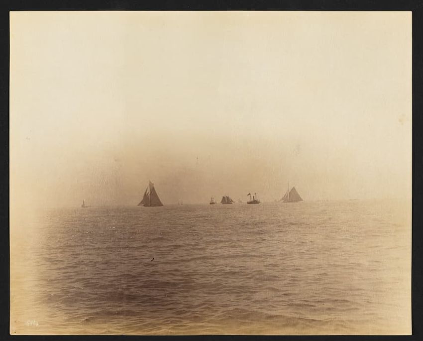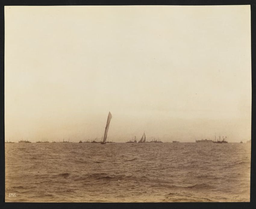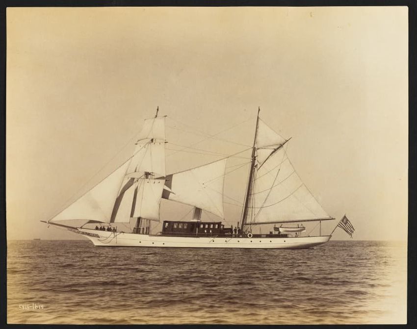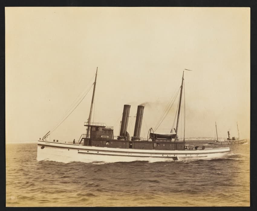 First America's Cup race between Defender & Valkyrie III, Defender wonDefender, designed and built in 1895 by N. G. Herreshoff to defend the America's Cup against Valkyrie III. Her bottom was polished bronze, but her topsides, deck beams, and some of her deck framing were aluminum (making her a gian...
