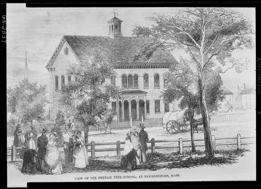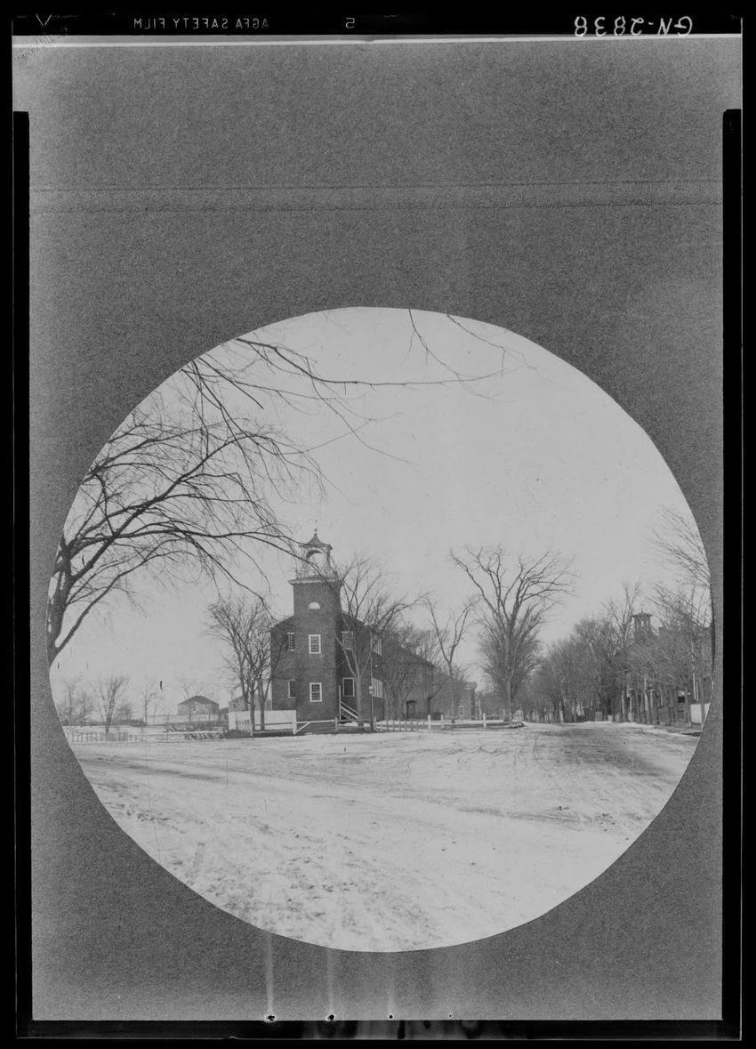 Stereo view of First Congregational Church, Lowell, Mass., undated. Photograph by Ranald Douglas, out door photographer, 260 Gorham Street, Lowell, Mass. The structure is the second church to occupy the current location. It was designed by the architectural firm Merrill and Cutler and built in 1884-...