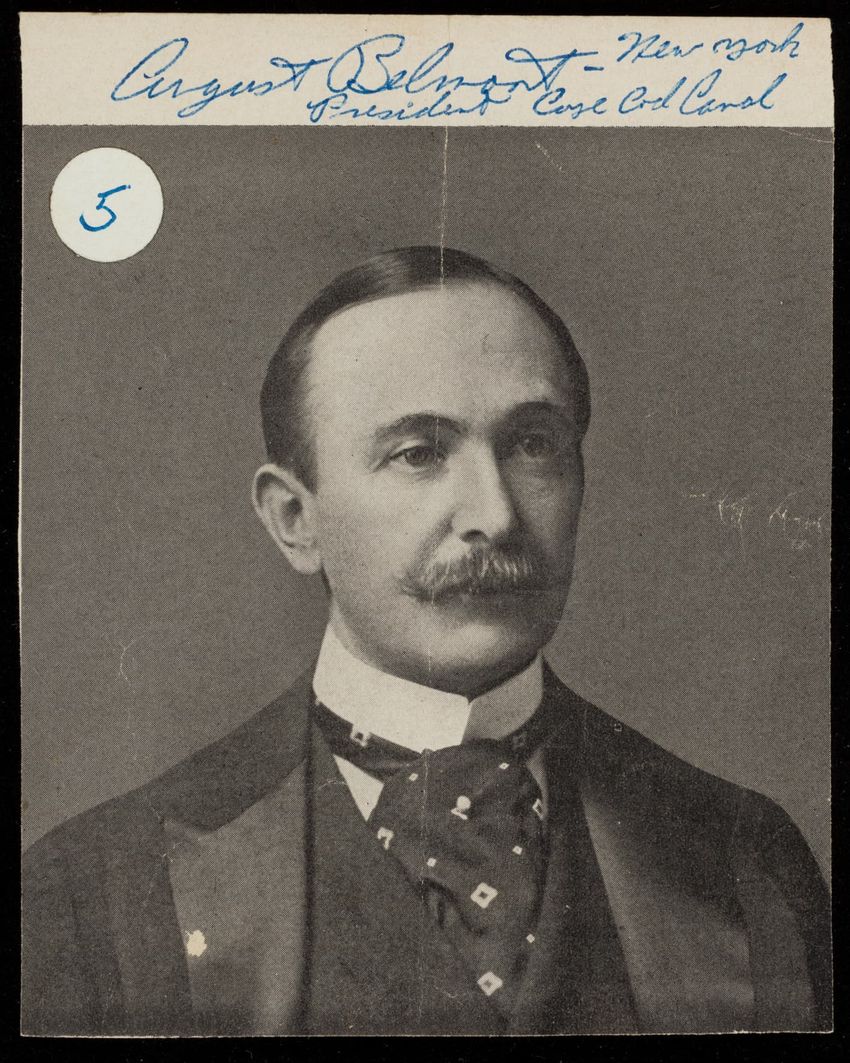 A black and white portrait of Cape Cod Canal project financier August Belmont.