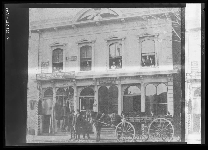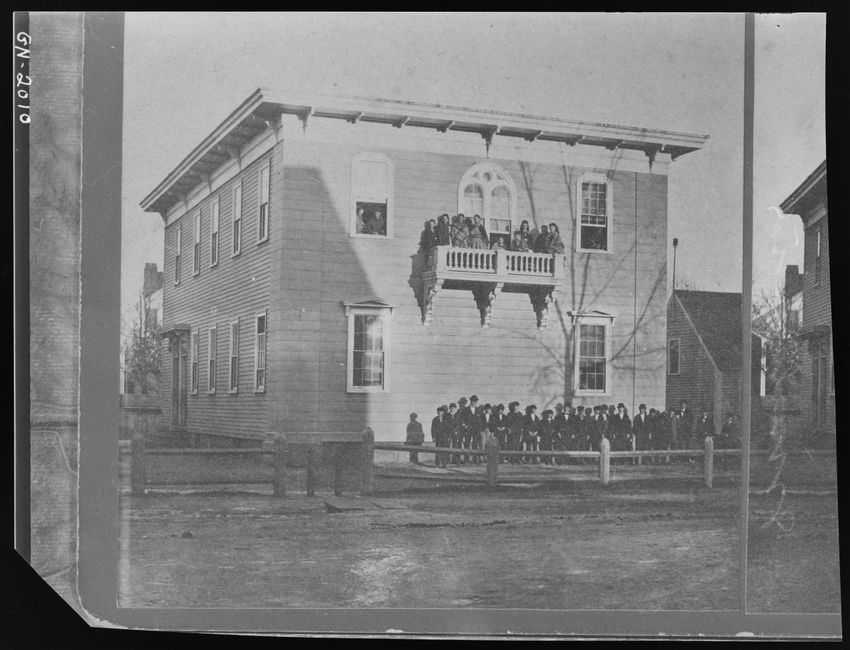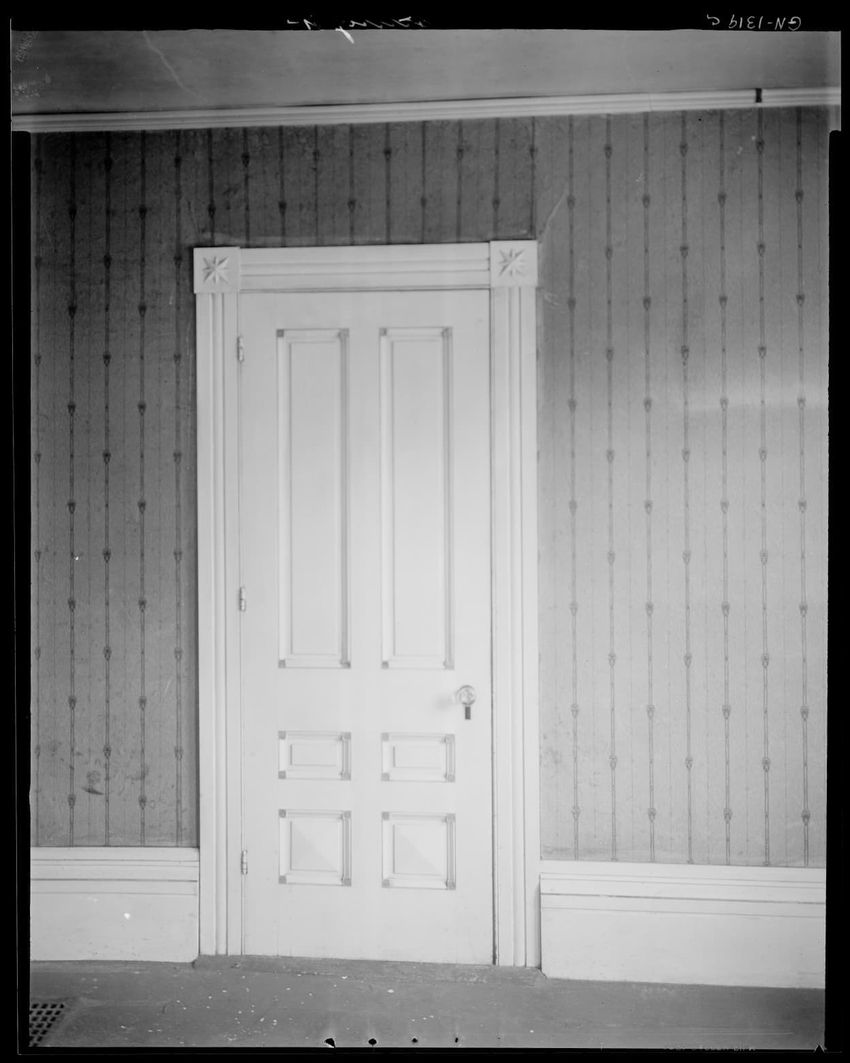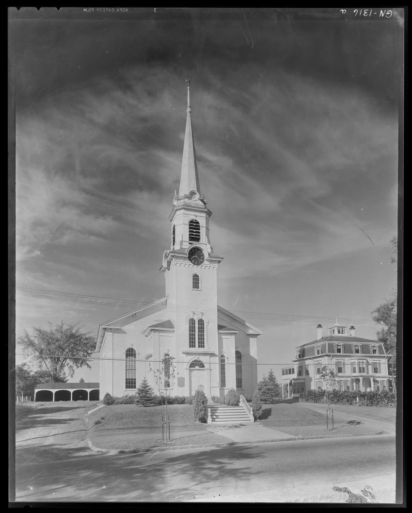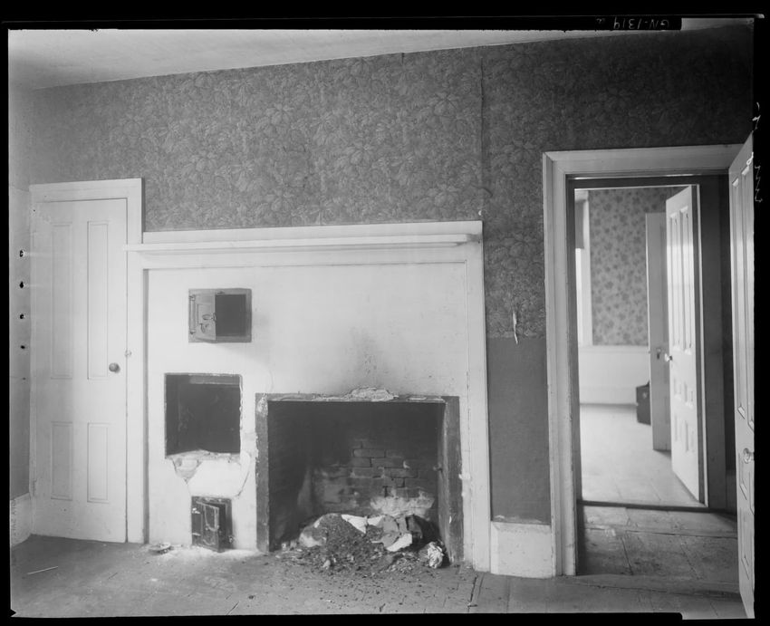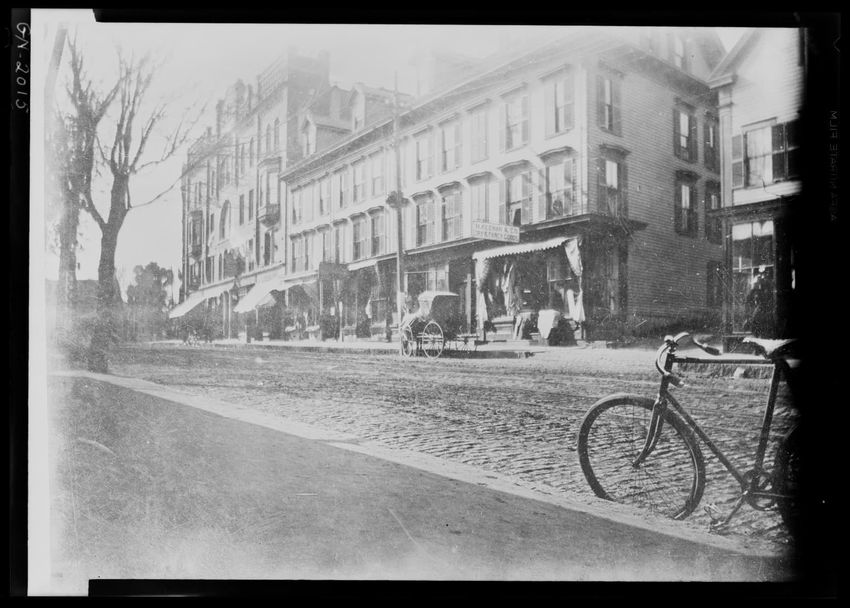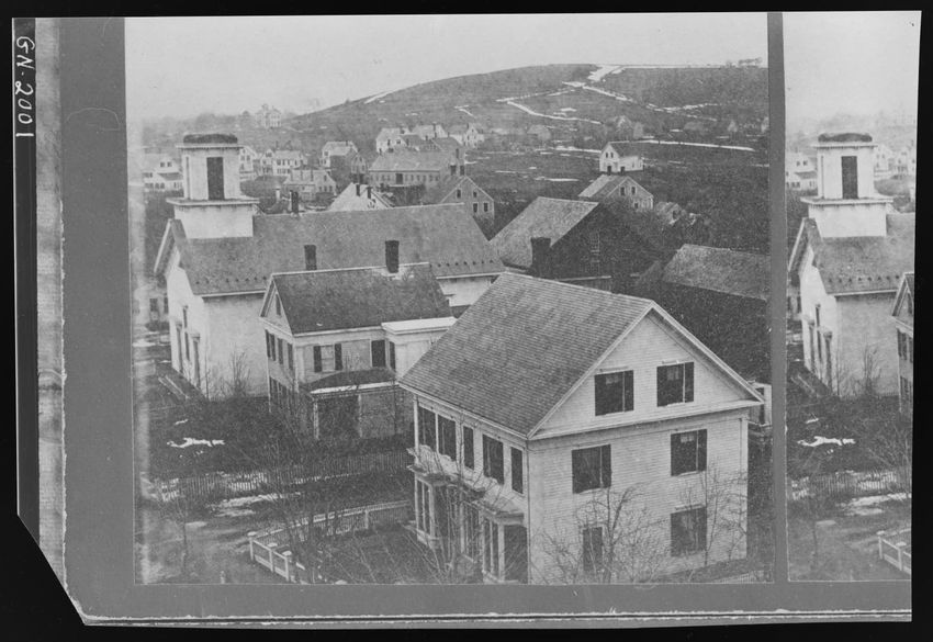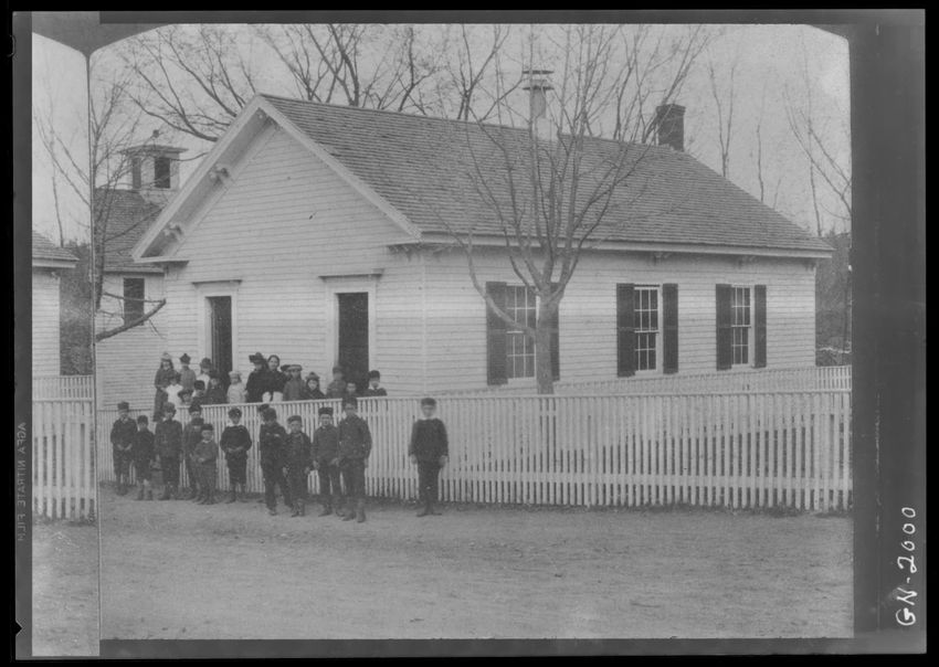 The image shows Curzon Mill in Newburyport, Massachusetts. The scene includes a wooden building on the right, with a shingled exterior and multiple windows. A dirt path runs alongside the building, surrounded by trees. On the left, a wooden fence and a large wooden trough near a vertical cylinder ar...