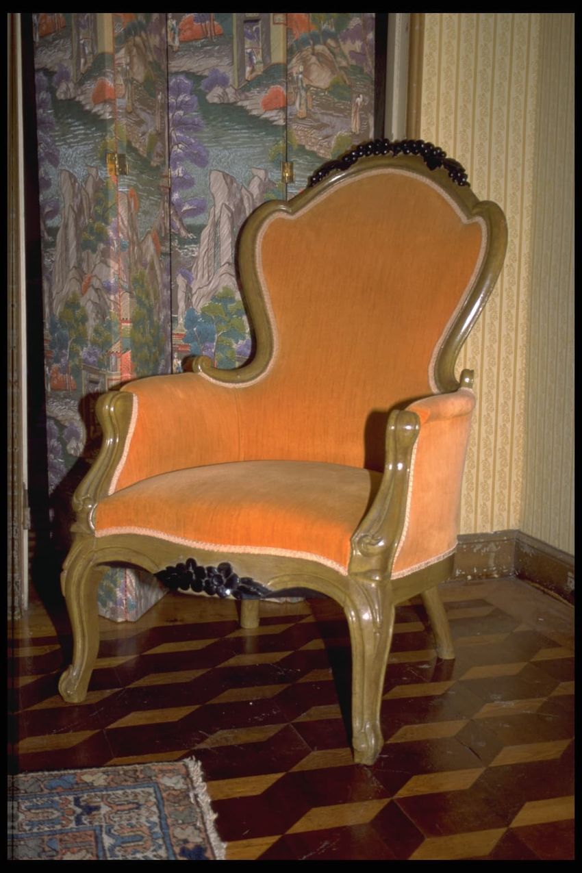 Barometer, made by L. Bassnett, Liverpool; elongated neck stretching from middle circular barometer chamber w/ mercury located below middle chamber. Weather inscriptions present (see diagram).