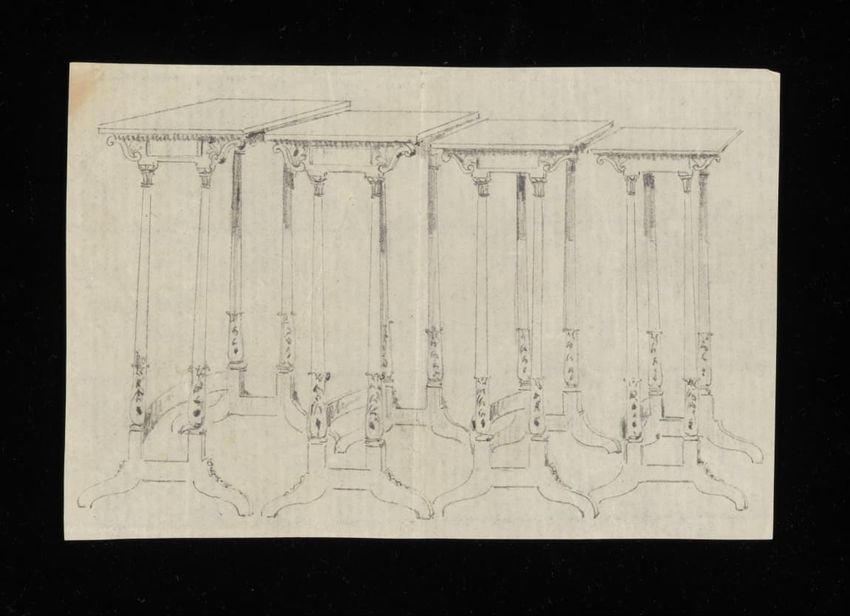 This file consists of 13 sketches rendered in pencil. Drawings depict tables manufactured by A. H. Davenport Co., Irving and Casson, or their successor Irving and Casson - A H. Davenport Co. A few drawings are more developed; however, the vast majority of the drawings are very rough sketches. Some o...