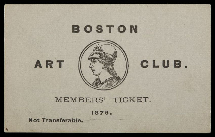 Membership card for William Sumner Appleton to the Museum of Fine Arts in Boston, Mass. Valid until February 28th, 1945, the card is courtesy of MFA director George Harold Edgell. The upper left-hand corner contains a symbol of three intertwined rings, reading "Art", "Industry", and "Education".