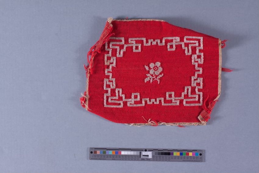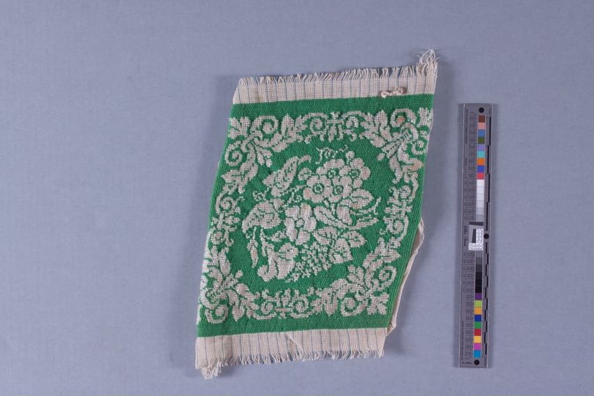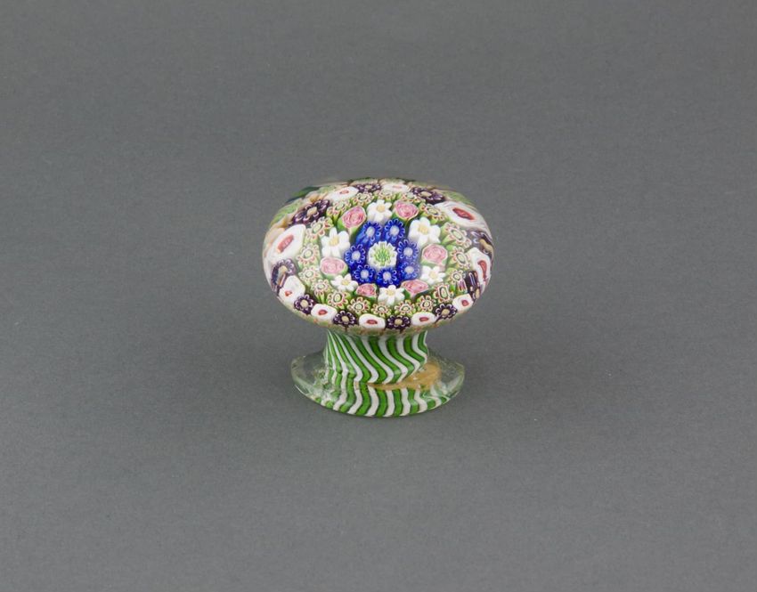 Three sprays of green, orange, and blue enamel flowers with gilt highlights around border; border around well: orange latticework and medallions, edged in blue and orange, of orange flowers; central image: orange flowers with green leaves and blue vine with gilt highlights; blue and gold garden fenc...