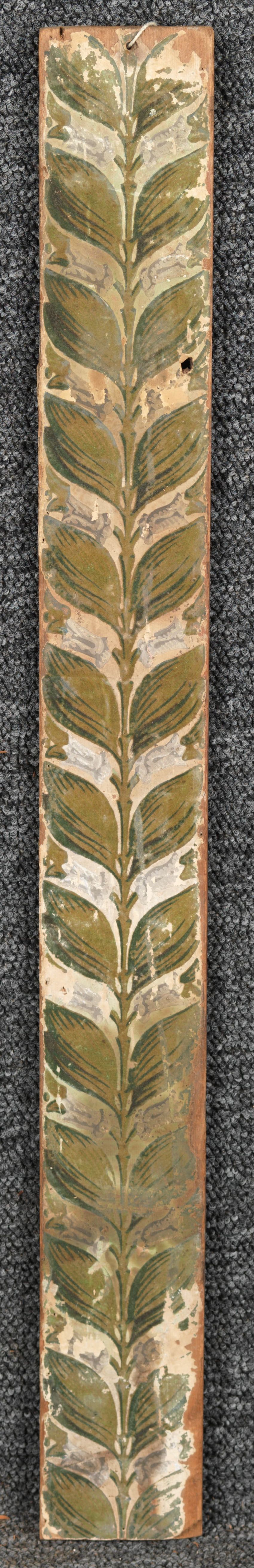 Earthenware vase with rounded shoulders tapering to lip. Tulip decoration in green and yellow with bands of light green, blue, and cream. The interior is green glazed.