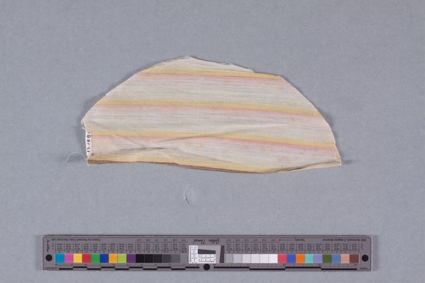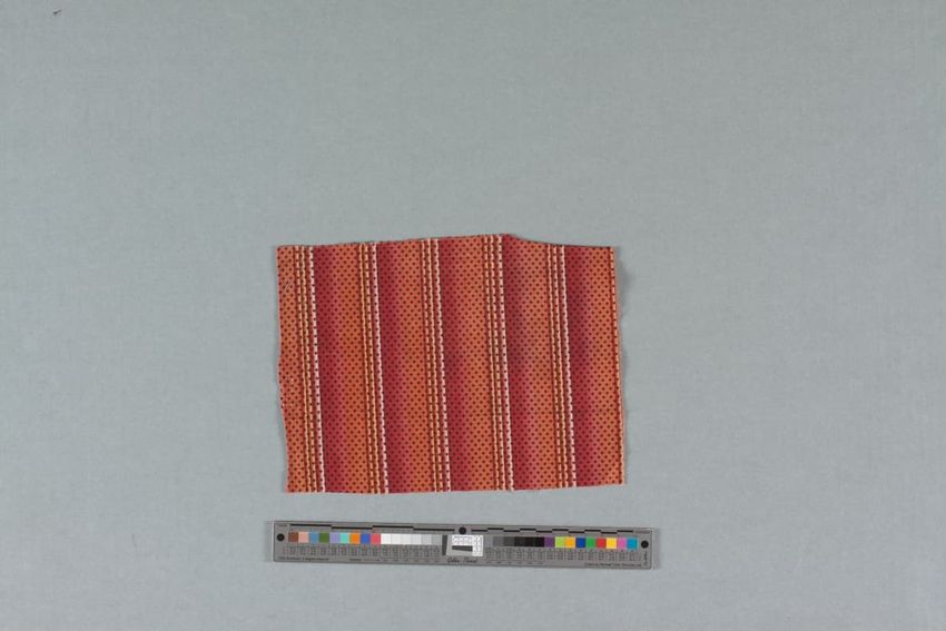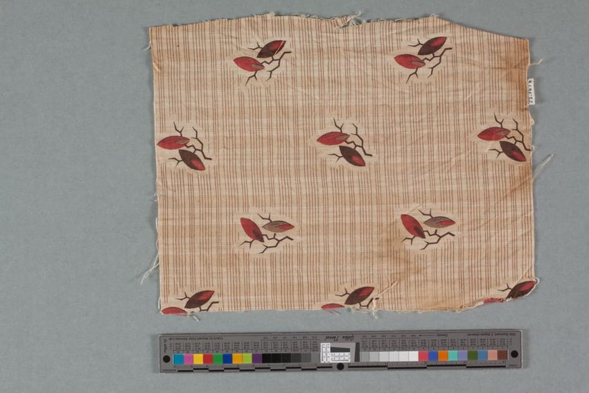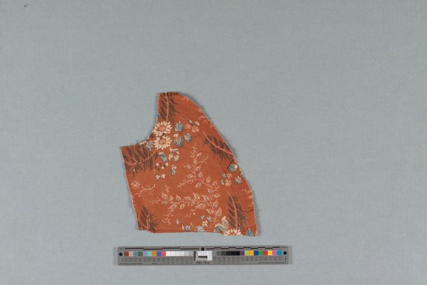 A: Lock B: Key Wood box lock with iron works mortised in. Three partial iron cover plates on back, two over bolt and one over keyworks. Front of box shows grained finish. Deadbolt key operated from both sides.