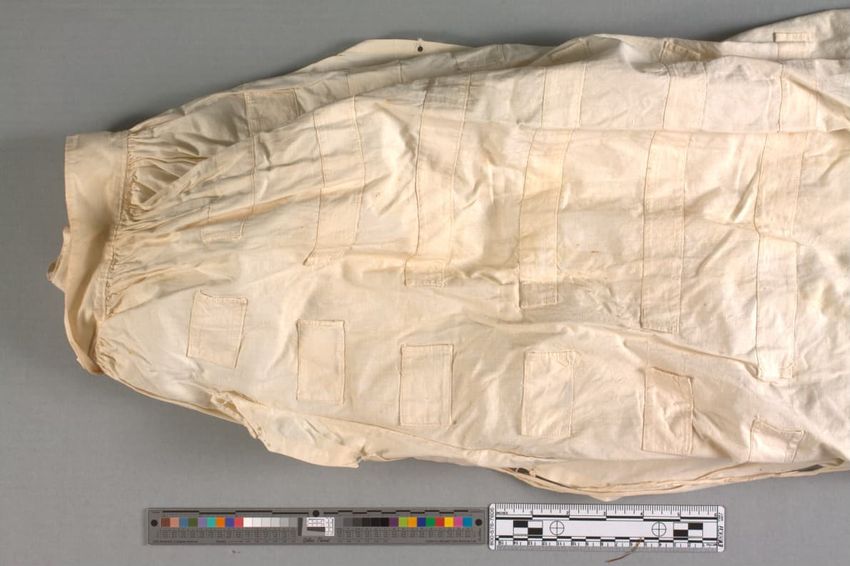 appliqué (technique), Berlin woolwork, cotton (textile), cross-stitching, embroidering, silk (textile), twill, velvet (fabric weave), wool (textile)