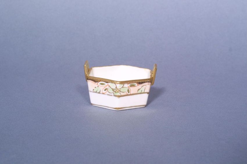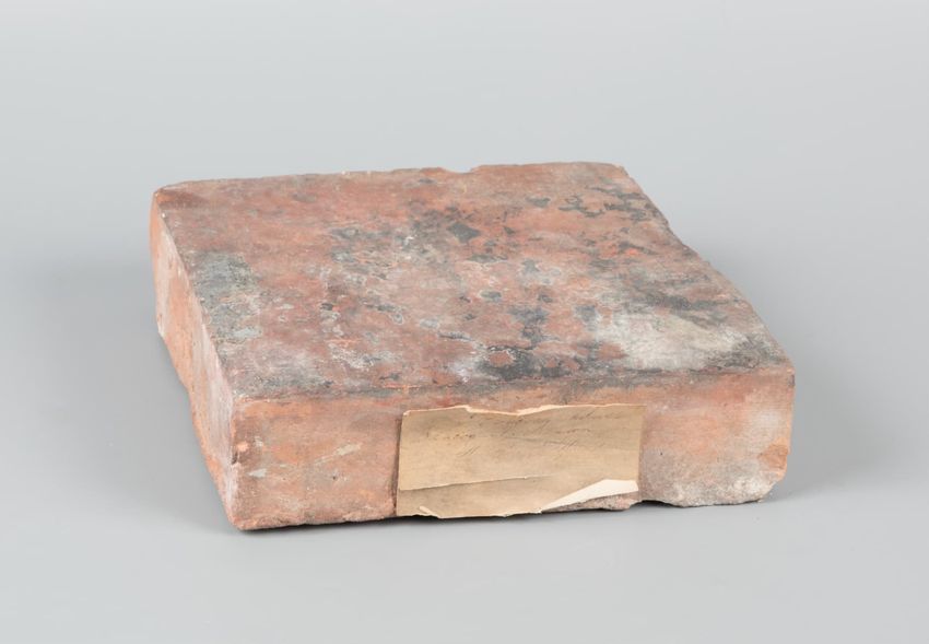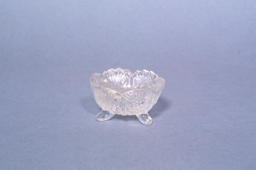 White, T-shaped; central circular motif with leafy projections within border of chevron- lines; interspace with floral and fan-like motifs; frame of chevron-lines filled with floral motifs; sides and bottoms edged with applied lace border; darned hearts and knotted fringe on cords.
