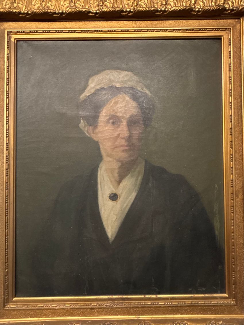 Portrait of Mrs. Charles A. (Arma) Cutting of Wayland and Boston, a stern looking, older, heavy-set woman with hair in bun. Great grandmother of Edwin B. Sears.
