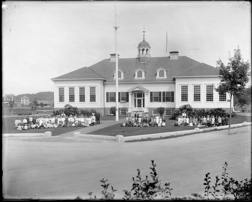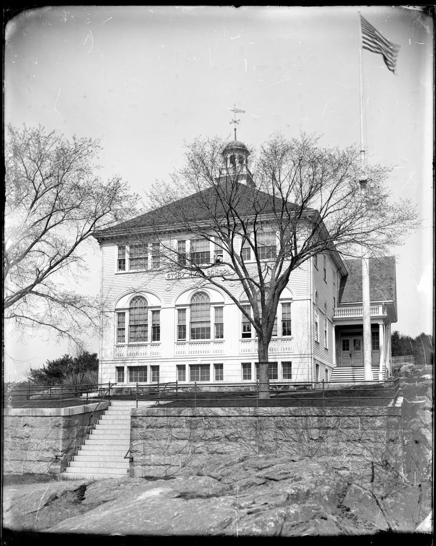 Denegre Estate 1904-34. Landmark School 1973-. Large home, trees. 2 of 4 views from side.