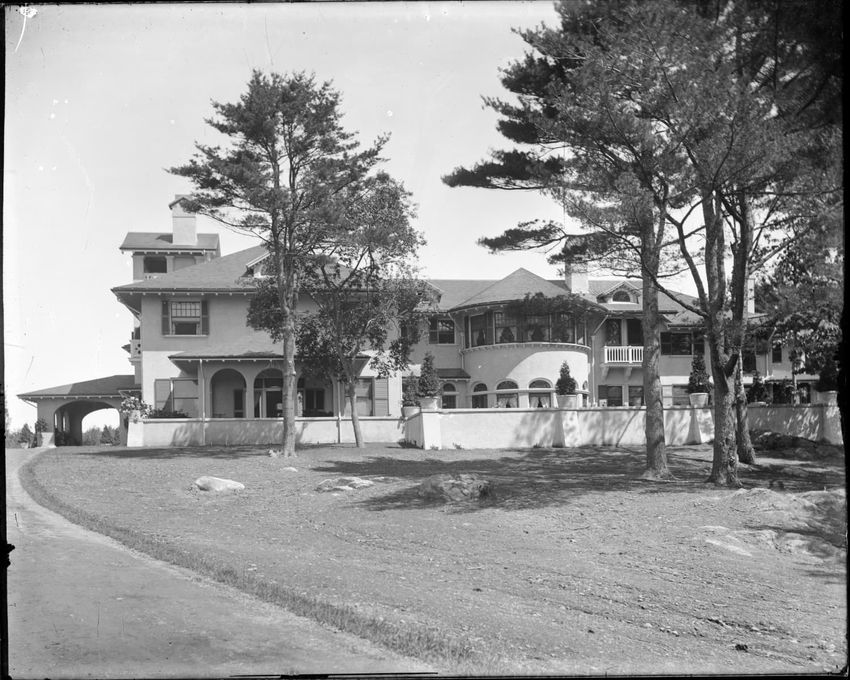 Summer estate of Walter Denis Denegre. The Landmark School is the Present Occupant. Large House Driveway, grounds, trees, landscapes. 1 of 4 views from side.