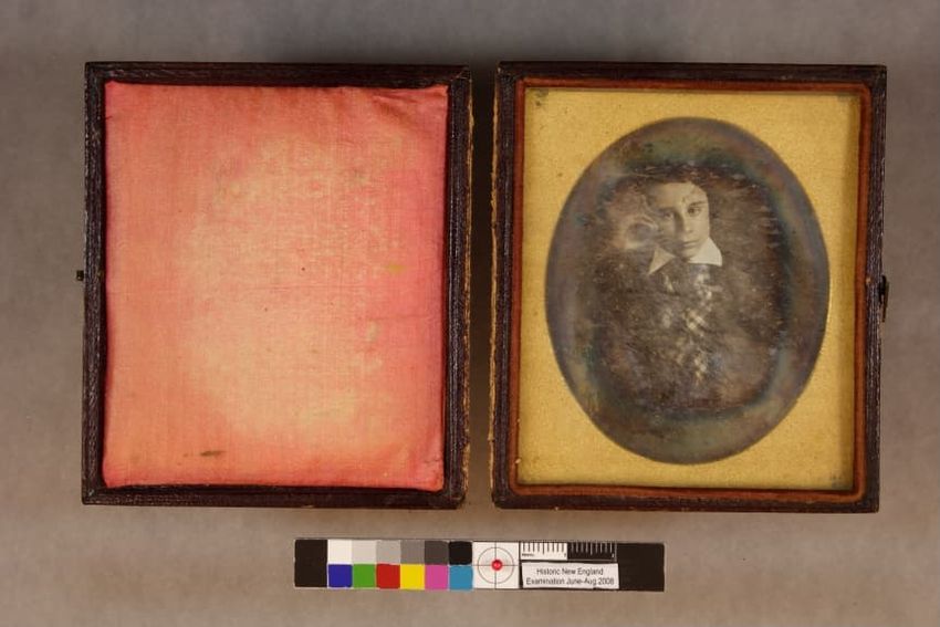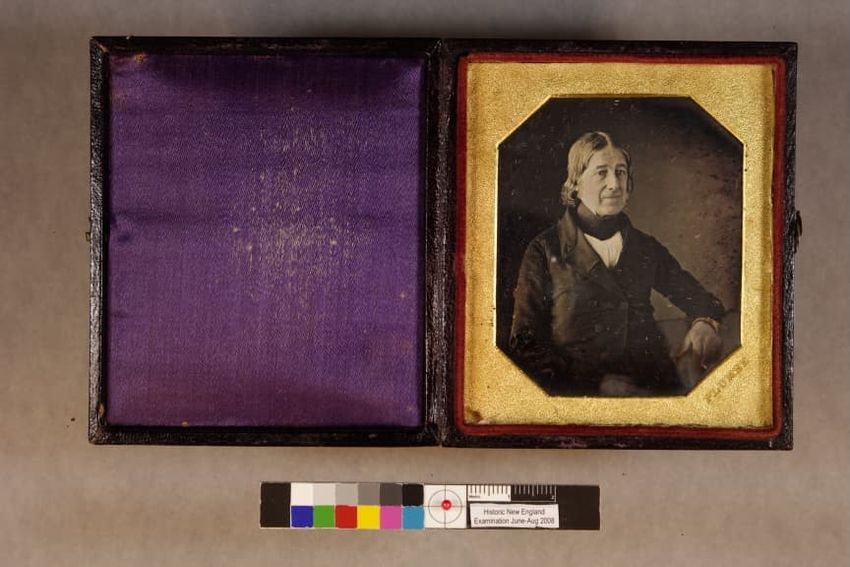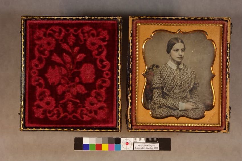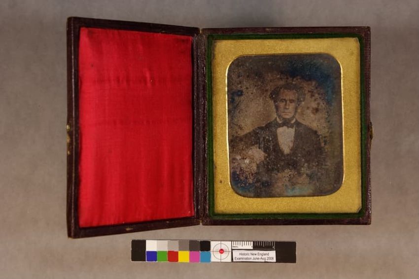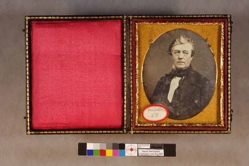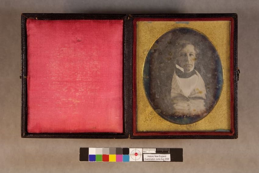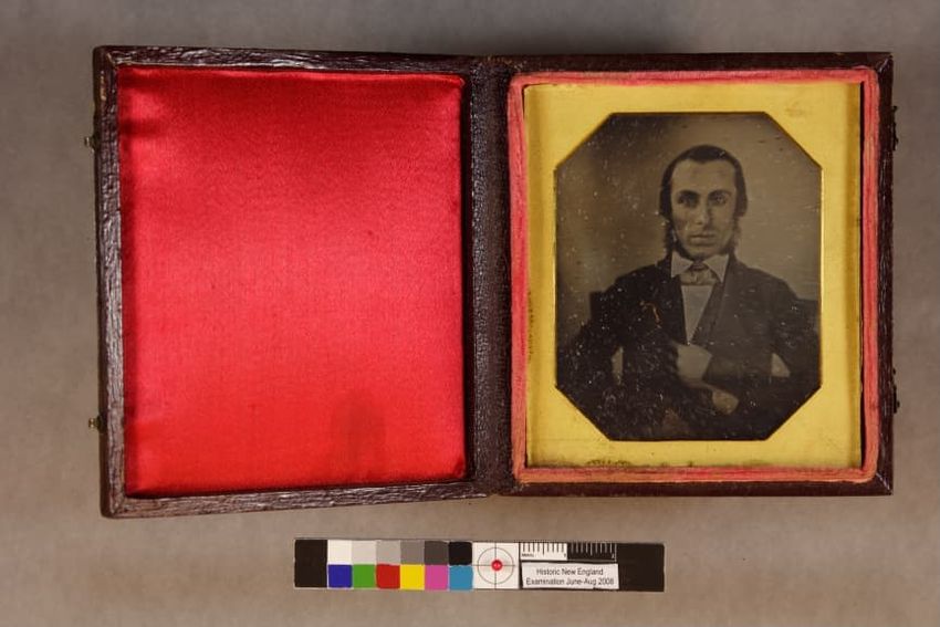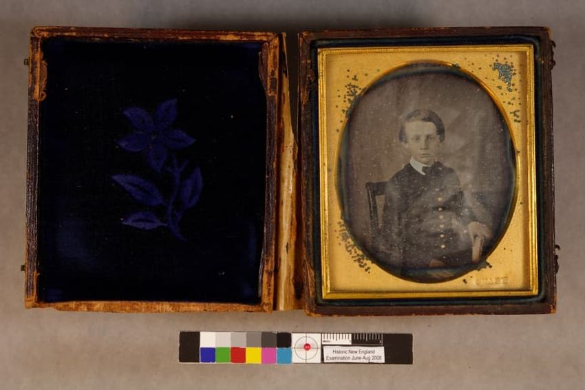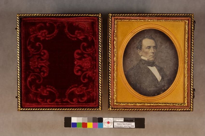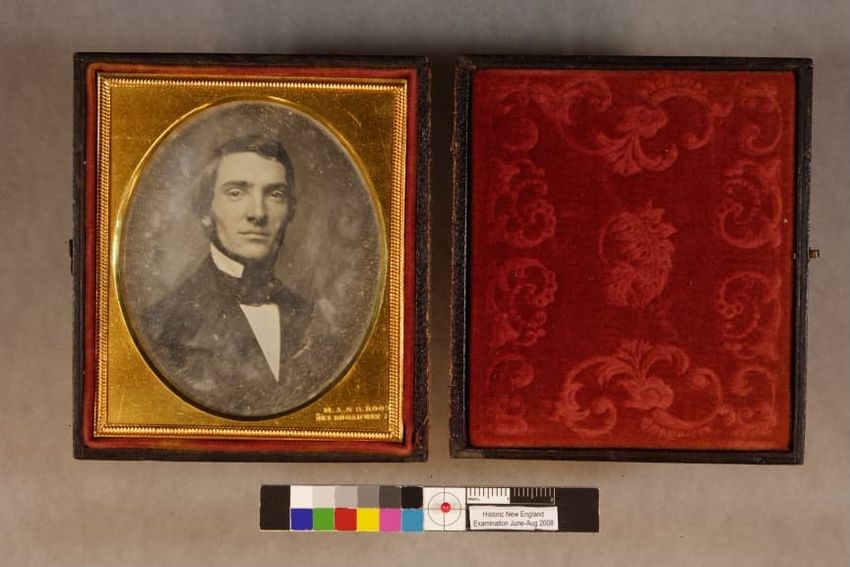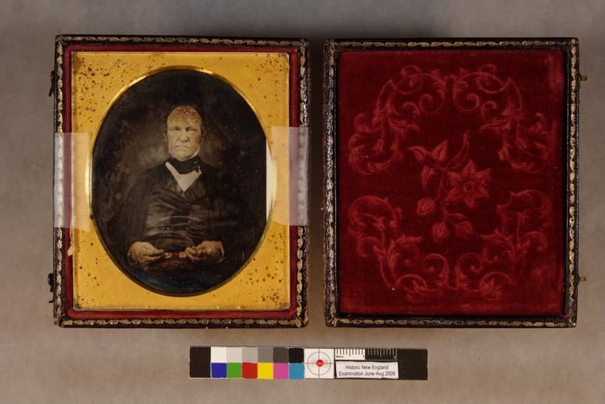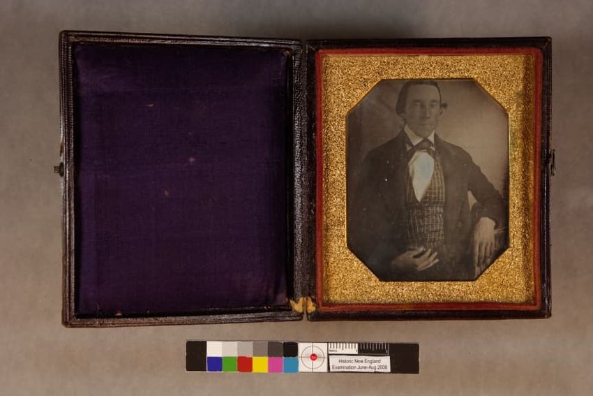 Two men playing checkers. At left is Mr. Amos Baker who worked at the Chapman Hall School for boys. As a middleaged man he married Matilda Eaton, great aunt of the donor. The man on the right is Mr. Samuel Parker of E. Cambridge. He adopted two of the donor's great aunts. Their name had been Eaton b...