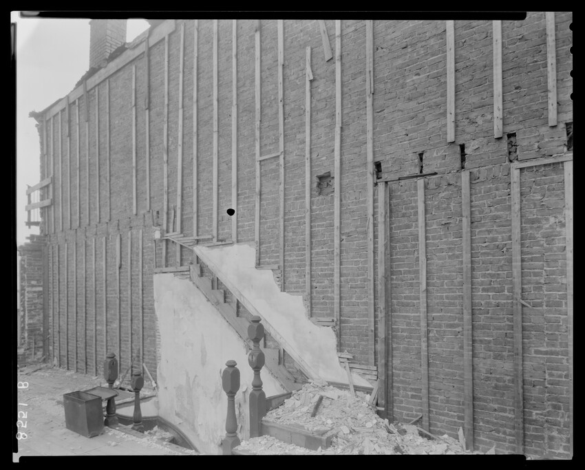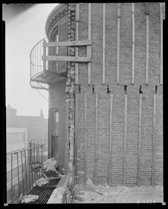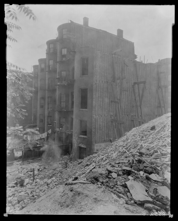 Dock Square, facing Faneuil Hall, Boston, Massachusetts, 8516-B Dock Square, Boston, Massachusetts, 8517-B Dock Square, Boston, Massachusetts, 8518-B Tenement house, rear exterior, 130 Dartmouth Street, Boston, Massachusetts, 8525-B Unidentified building, rear exterior, 3-5 Decatur Court, Charlestown, Boston, Massachusetts, 8526-B Unidentified building, front exterior, 3-5 Decatur Court, Charlestown, Boston, Massachusetts, 8527-B Old South Church, front exterior, corner of Boylston Street and Dartmouth Street, Boston, Massachusetts, 8530-B Old South Church, exterior, cracked wall near rectory, corner of Boylston Street and Dartmouth Street, Boston, Massachusetts, 8531-B Old South Church, exterior, cracked wall near rectory, corner of Boylston Street and Dartmouth Street, Boston, Massachusetts, 8532-B Old South Church, exterior, plumbed straight edge center arched window, corner of Boylston Street and Dartmouth Street, Boston, Massachusetts, 8533-B Old South Church, interior, cracked walls and center arch window, corner of Boylston Street and Dartmouth Street, Boston, Massachusetts, 8534-B Old South Church, exterior view of tower, taken from rectory window, corner of Boylston Street and Dartmouth Street, Boston, Massachusetts, 8535-B Old South Church, exterior view of tower, taken from rectory window, corner of Boylston Street and Dartmouth Street, Boston, Massachusetts, 8536-B Old South Church, interior view from stairway at 2nd and 3rd floors, corner of Boylston Street and Dartmouth Street, Boston, Massachusetts, 8537-B Old South Church, exterior, plumbed straight edge center arched windows, corner of Boylston Street and Dartmouth Street, Boston, Massachusetts, 8538-B Old South Church, exterior, plumbed straight edge center arched windows, corner of Boylston Street and Dartmouth Street, Boston, Massachusetts, 8539-B Old South Church, interior view from stairway at 2nd and 3rd floors, corner of Boylston Street and Dartmouth Street, Boston, Massachusetts, 8540-B Unidentified building, rear exterior, 162 D Street, South Boston, Boston, Massachusetts, 8541-B Stores, side exterior, 113-115 Dartmouth Street, Boston, Massachusetts, 8542-B Stores, front exterior, 113-115 Dartmouth Street, Boston, Massachusetts, 8543-B Apartments, rear exterior, 127 and 129 Dartmouth Street, Boston, Massachusetts, 8544-B Apartments, front exterior, 127 and 129 Dartmouth Street, Boston, Massachusetts, 8545-B Apartments, rear exterior, 127 and 129 Dartmouth Street, Boston, Massachusetts, 8546-B Stores and tenement buildings, front exterior, 136 D Street, South Boston, Boston, Massachusetts, 8547-B Stores and tenement buildings, rear exterior, 136 D Street, South Boston, Boston, Massachusetts, 8548-B Apartment building, side exterior, 123 Dartmouth Street, Boston, Massachusetts, 8549-B Apartment building, side exterior, 123 Dartmouth Street, Boston, Massachusetts, 8550-B Apartment building, side exterior, 123 Dartmouth Street, Boston, Massachusetts, 8551-B Apartment building, rear exterior, 123 Dartmouth Street, Boston, Massachusetts, 8552-B Apartment building, front exterior, 123 Dartmouth Street, Boston, Massachusetts, 8553-B Store, front exterior, 117 D Street, South Boston, Massachusetts, 8554-B Store, side exterior, 117 D Street, South Boston, Massachusetts, 8555-B Unidentified buildings, rear exterior, 6-8 Cushman Avenue, Boston, Massachusetts, 8556-B Unidentified building, rear exterior, 6 Cushman Avenue, Boston, Massachusetts, 8557-B Unidentified building, rear exterior, 6 Cushman Avenue, Boston, Massachusetts, 8558-B Tenement houses, front exterior, 48 Curve Street, Boston, Massachusetts, 8560-B Unidentified building, rear exterior, 12 Fellows Court, Boston, Massachusetts, 8563-B Unidentified building, side exterior, 12 Fellows Court, Boston, Massachusetts, 8565-B Unidentified building, side exterior, 12 Fellows Court, Boston, Massachusetts, 8566-B Apartment building, rear exterior, 51 Fay Street, Boston, Massachusetts, 8567-B House, rear exterior, 208-210 Everett Street, East Boston, Massachusetts, 8568-B House, front exterior, 208-210 Everett Street, East Boston, Massachusetts, 8569-B Unidentified building, side exterior, 12 Fellows Court, Boston, Massachusetts, 8564-B Unidentified building, rear exterior, 42 Eutaw Street, East Boston, Massachusetts, 8570-B Tenement house, rear exterior, 74 Everett Street, East Boston, Massachusetts, 8571-B Tenement house, rear exterior, 74 Everett Street, East Boston, Massachusetts, 8572-B Unidentified building, front exterior, 41 Everett Street, East Boston, Boston, Massachusetts, 8573-B Unidentified building, front exterior, 41 Everett Street, East Boston, Boston, Massachusetts, 8574-B House, rear exterior, 39 Everett Street, East Boston, Boston, Massachusetts, 8575-B House, rear exterior, 23 Everett Street, East Boston, Boston, Massachusetts, 8576-B