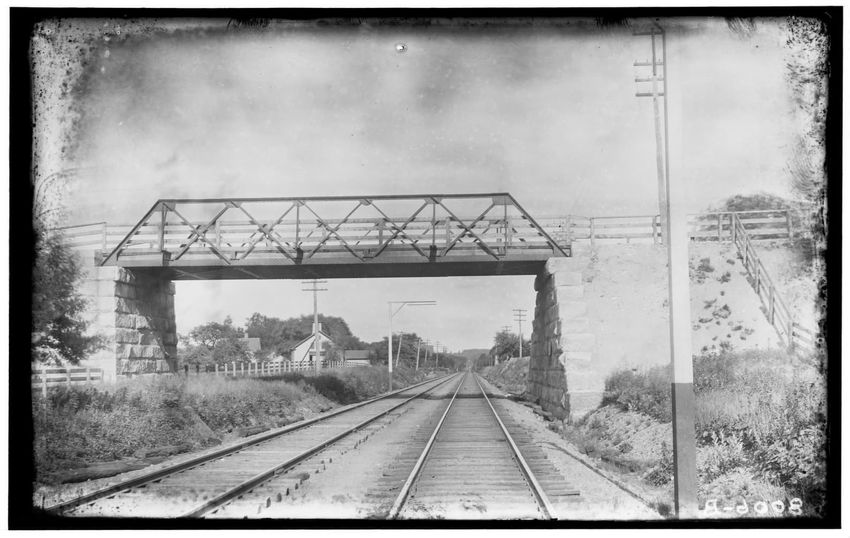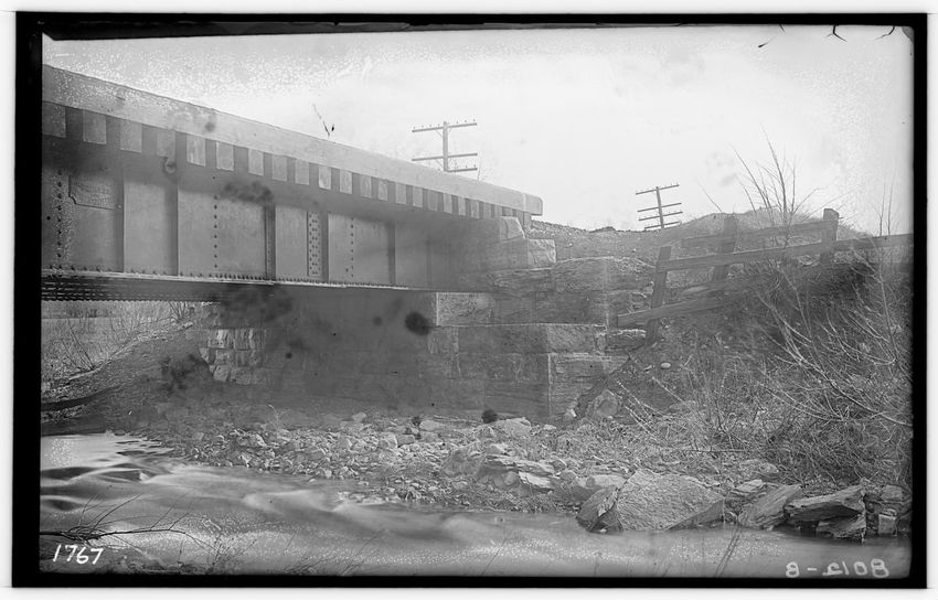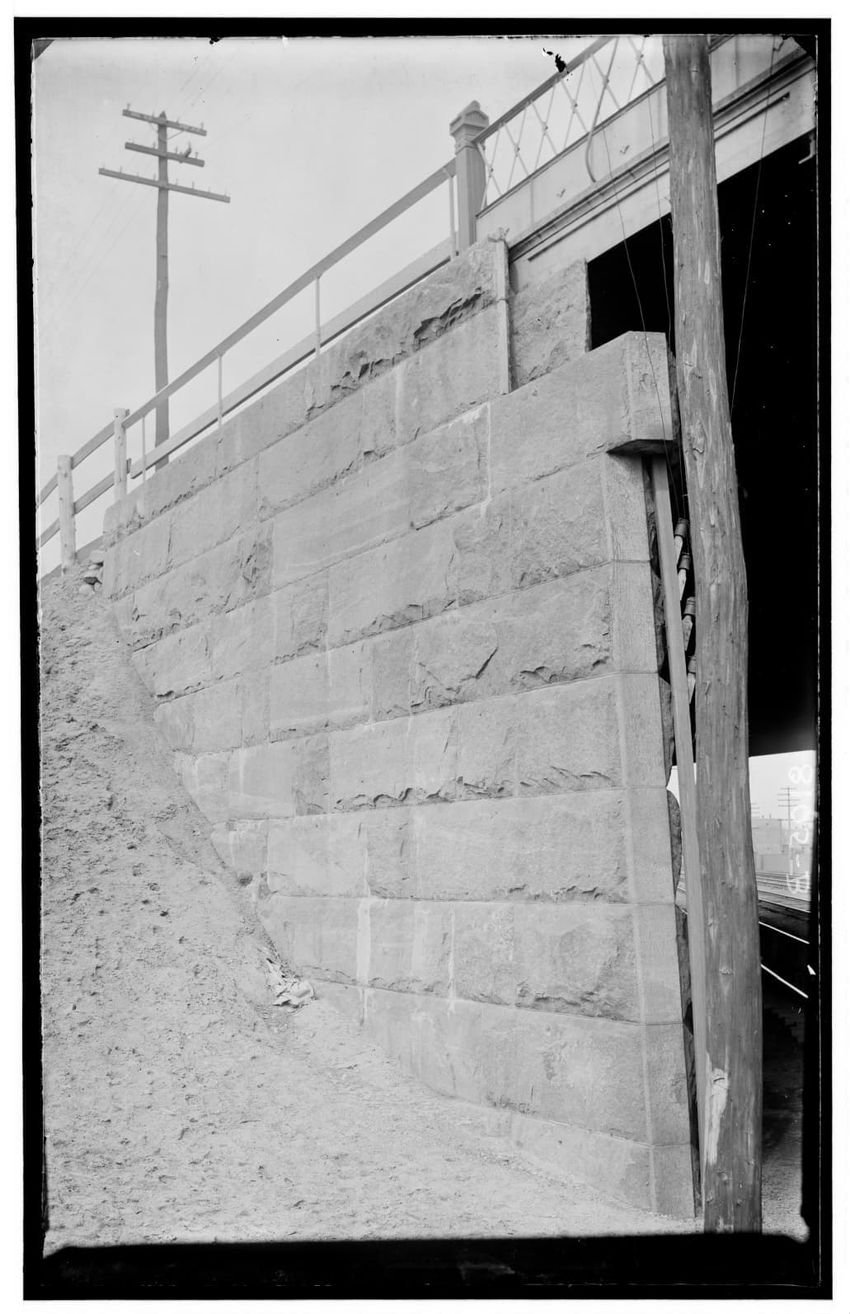 West side of Milk Street, north of railroad, showing wing wall, Westborough, Massachusetts, 8025-B