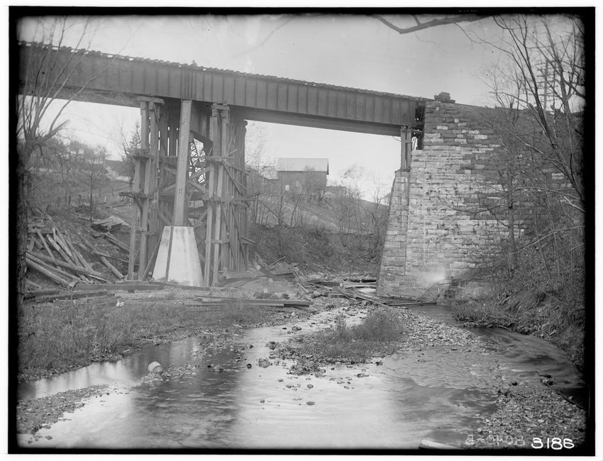 Bridge #131B, showing abutments and falsework, Chester, Massachusetts, 8019-B